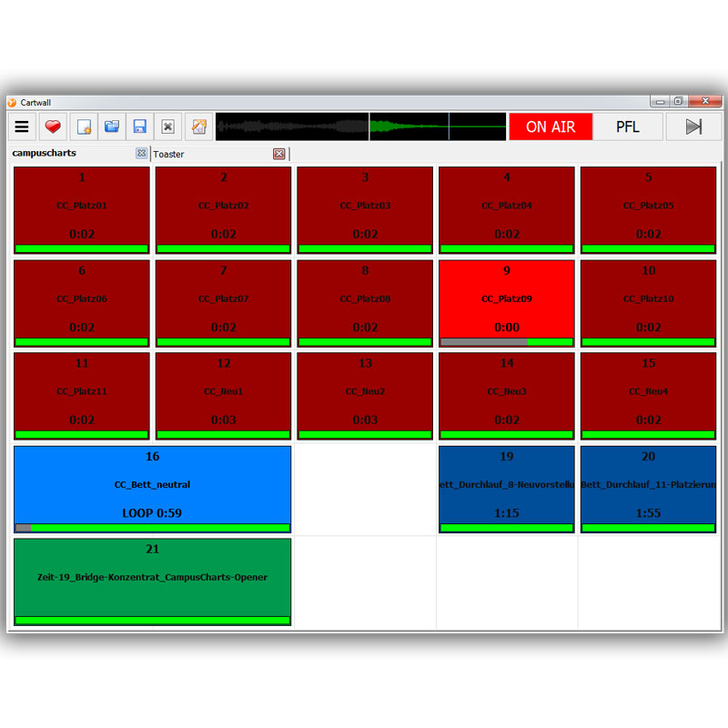 - Playlist, Cartwall, Cue Editor, Mix Editor, events, screen objects, file logging