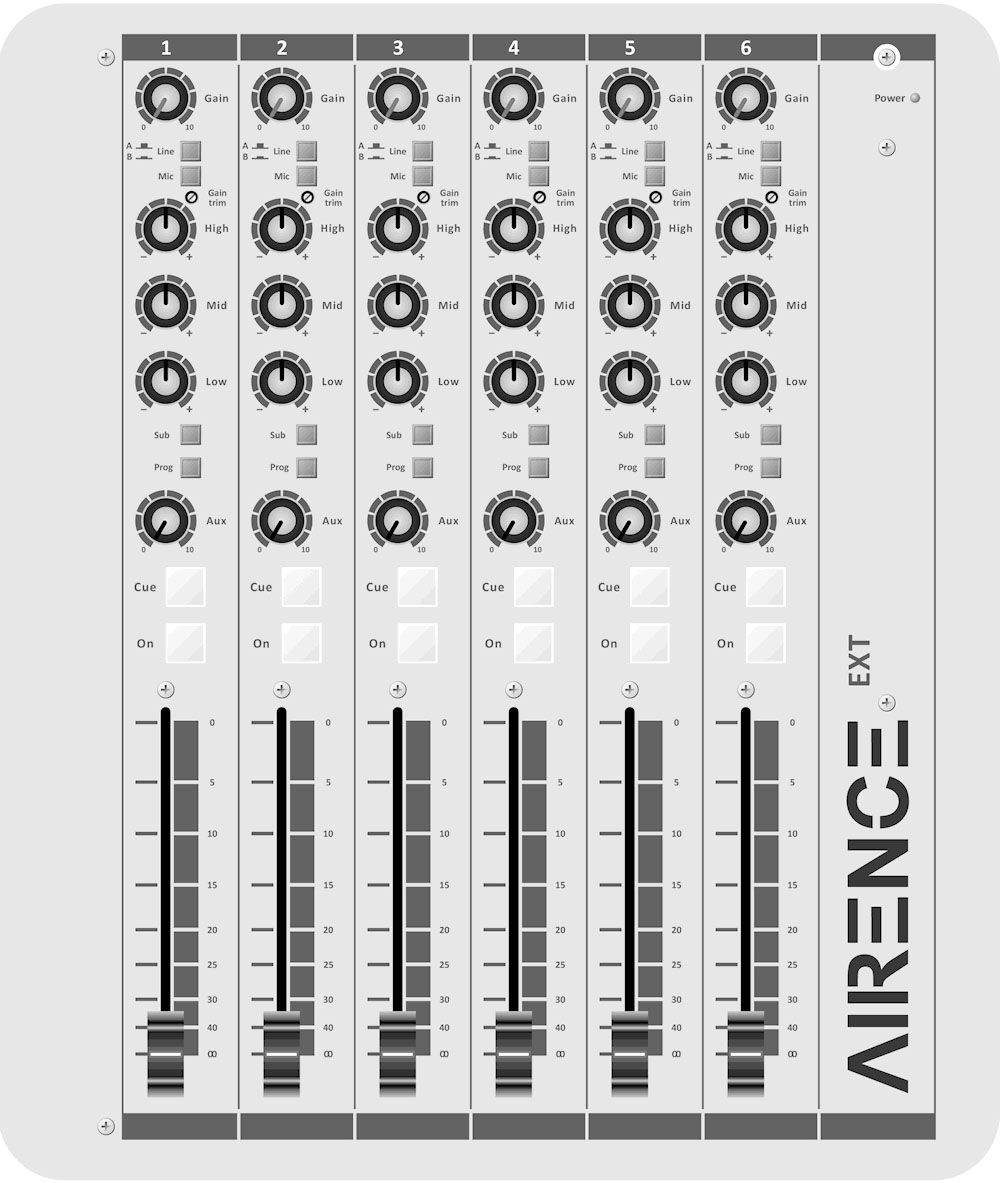 D&R Airence-USB Extension Unit. Konzola dodatak za Airance seriju. Može se ukombinovati tako da Expansion bude ulazna sekcija odnosno proširenje. Poseduje jedino mikrofonske i linijske kanale, insert i vezu za Main Unit ili treći mikser. Odlično rešenje za nadogradnju već postojećeg miksera bez dodatne kupovine veće i skuplje miksete i ponovnog vezivanja u sistem.