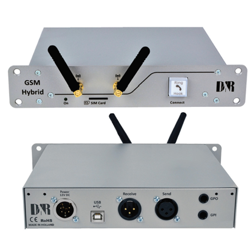 D&R GSM Hybrid aktivni telefonski hibrid. With the D&R GSM Hybrid you can add a simple and effective wireless interface that your reporters can call. With features like HD voice, Echo canceling, digital EQ and application control over USB on your PC it is a nice tool to expand the communication. Possibilities of your studio with your reporters in the field. The GSM Hybrid has its own number reporters directly can dial. The call can be taken on the mixing console due to built in GPIO’s. The electronics are housed in a sturdy metal 9.5” rack mount case. With antenna’s on the front side for optimum receiver conditions. An external 12 volt power supply adapter is part of the delivery. Software features are in and output metering and level control, phone dialing, number recognition and GSM signal strength indication. The Alert feature is implemented to let a reporter in the field ‘wake-up’ a DJ behind the desk to start an interview. Assumed is that a connection is already there and the DJ is doing some other work in the studio while the reporter waits for the moment to start the interview.
