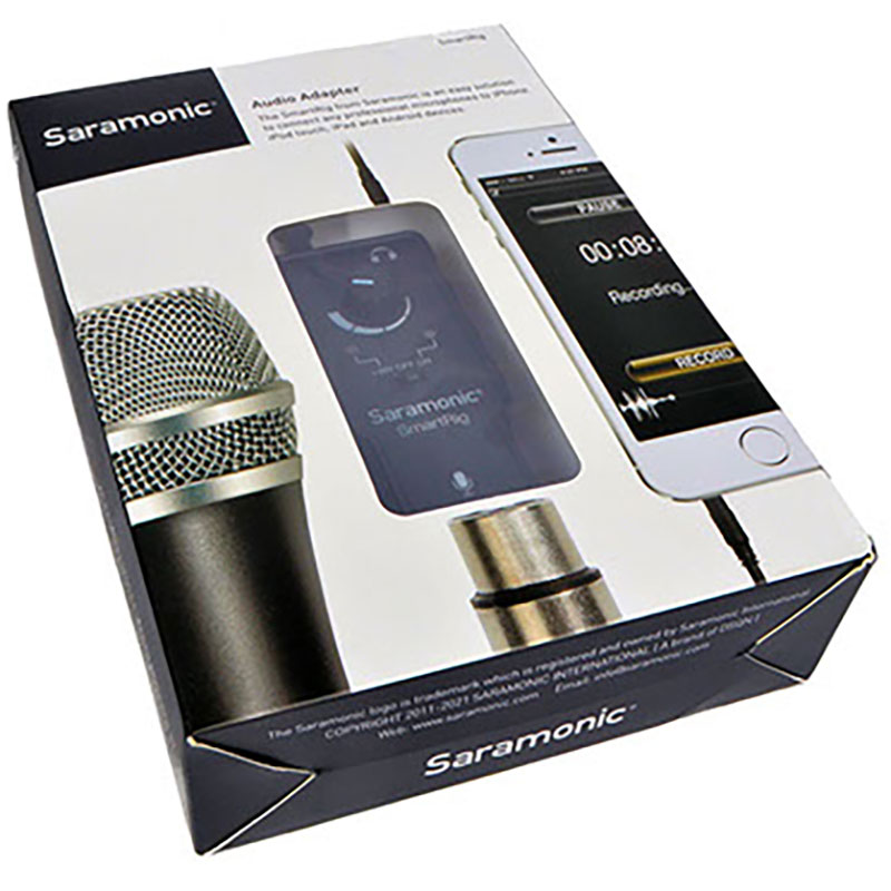 D&R SmartRig-2 XLR Audio Adapter. Is an easy solution to connect any professional microphone to an iPhone, iPod touch, or iPad and Android devices. As a high-quality microphone preamp. SmartRig allows you to use professional stage microphones or high-end studio microphones to be used as reporter mics in live situations together with your mobile iOS or Android devices as the mobile transmitter to your studio. It also supports HD Voice with its bandwidth of 20-20.000Hz