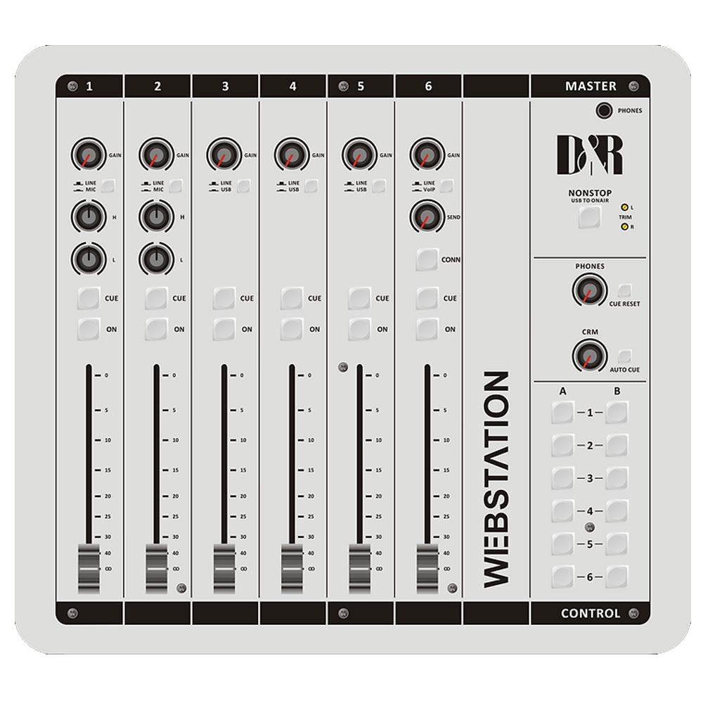 D&R Webstation USB-VoIP mikseta ispunjava sve zahteve visoko kvalitetnih radio produkcijskih mikseta. Poseduje ugrađen Telephone VOIP, 3 in/out stereo USB kanala i 2 low noise mikrofonska ulaza. Glavna odlika ovog miksera je veoma nizak nivo termičkog šuma.