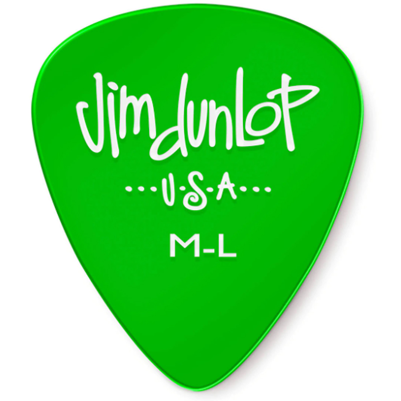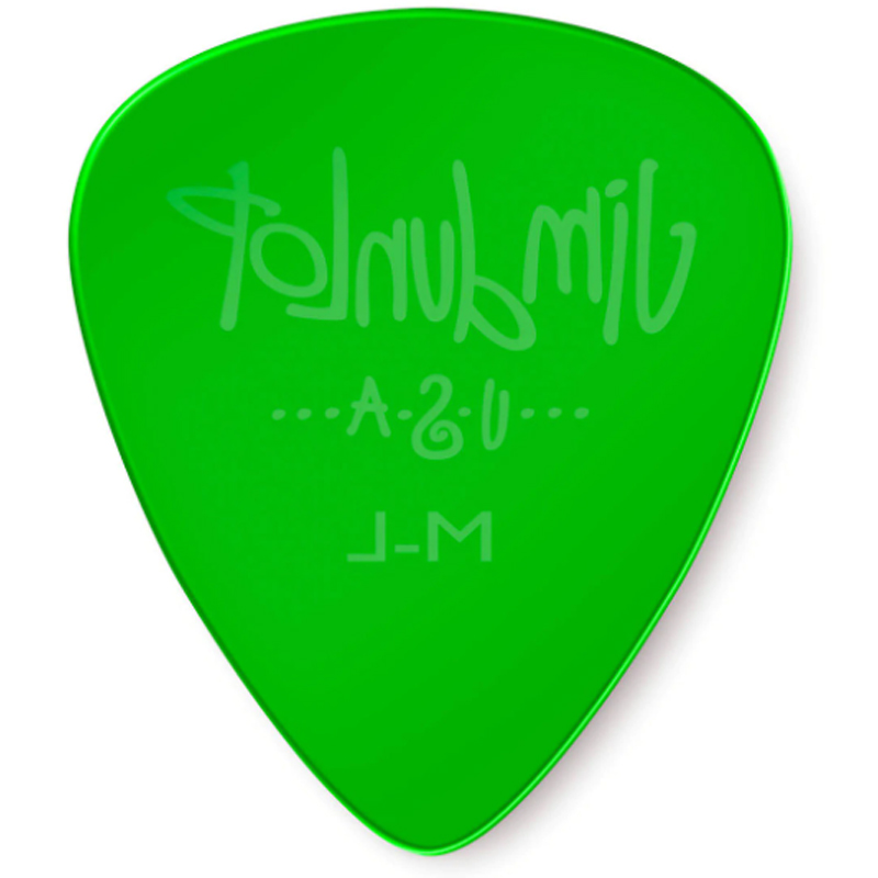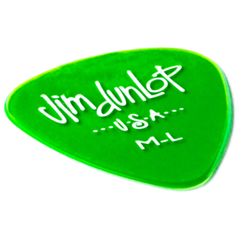 Dunlop Gels Green Medium Light trzalica. Beautifully translucent pick delivers stellar snappy attack and response. Made from Dunlop's custom-formulated polycarbonate — comfortable between the fingers. Ideal for chunking out heavy riffs, soaring leads, or softly strumming.