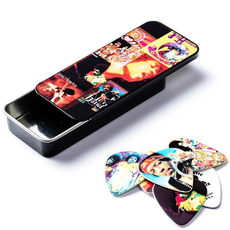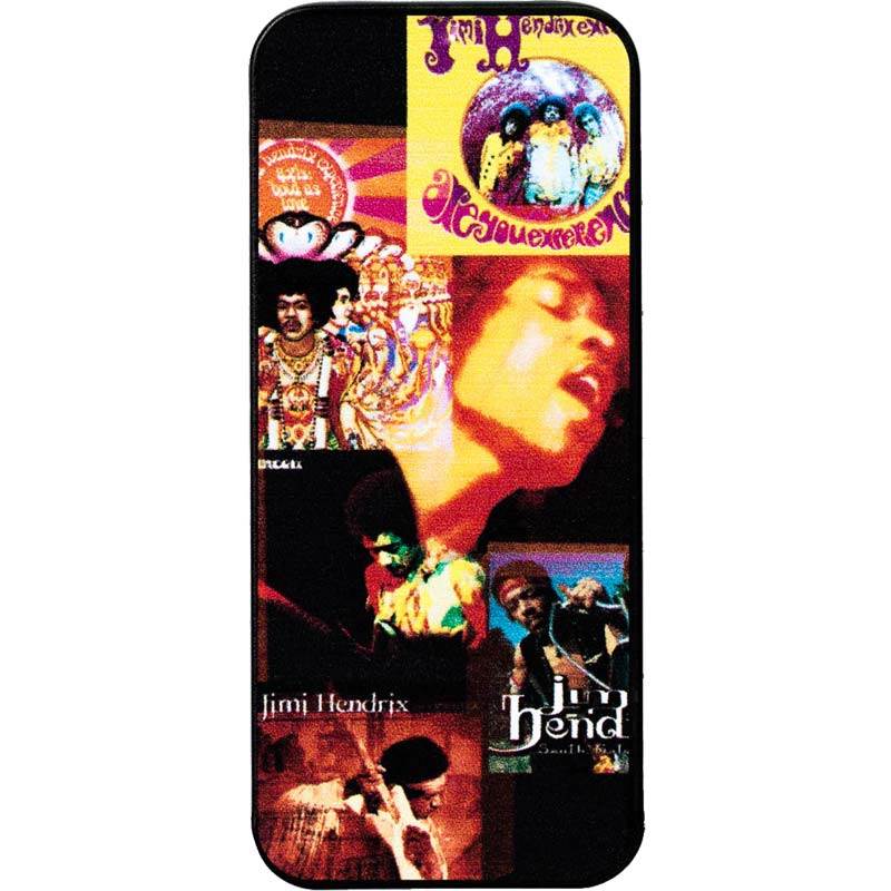 Dunlop Jimi Hendrix PICK TIN JH-PT08H komplet trzalica. Komplet sadrži 12 trzalica sa motivima poznatih albuma Jimi Hendrixa. Idealan poklon za gitariste!