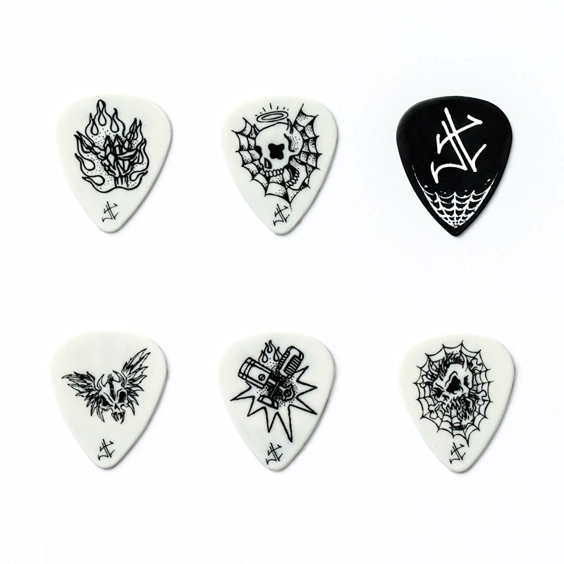 Dunlop JPH01T088 Hetfield komplet trzalica. This Pick Tin features six picks with art from Dirty Donny inspired by the axe-wielding Metallica madman, including one pick modeled after the one James uses on the road.