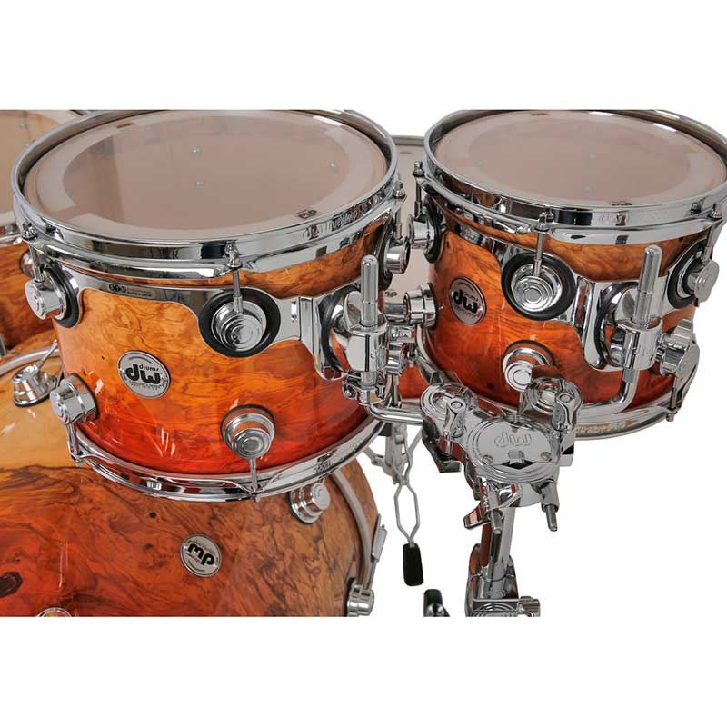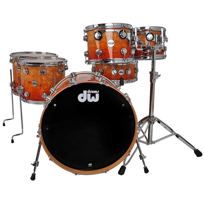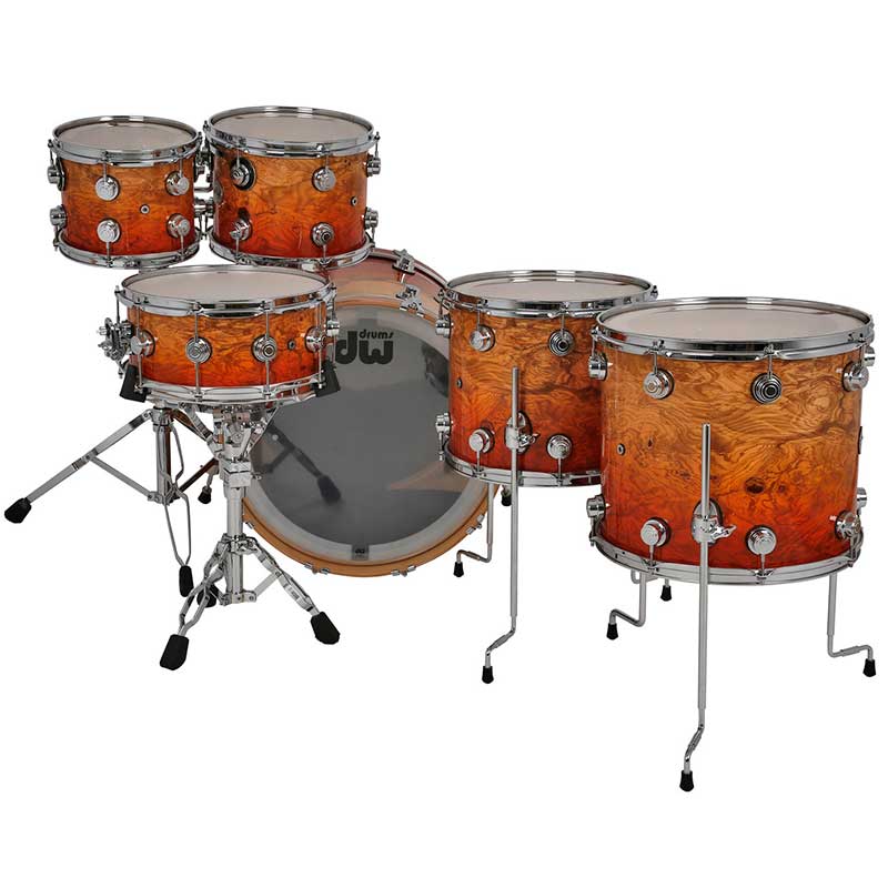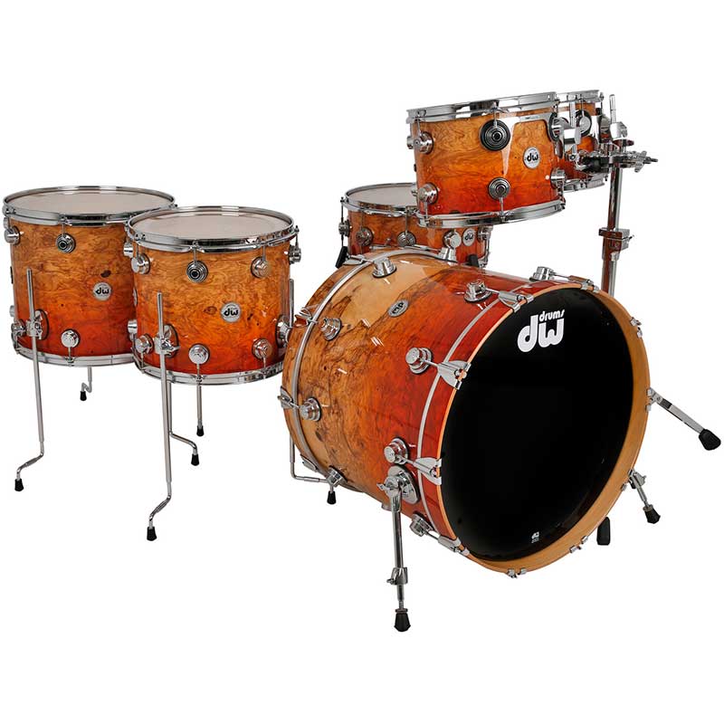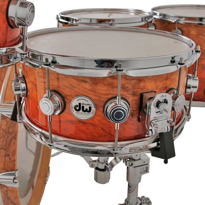 This shell pack from the DW Collector's Series is an absolute feast for the eyes and ears. Its quilted wood veneer, natural lacquer finish, and polished nickel hardware are sure to command the attention of anyone in the room with you when you perform. HVLT vertical-grain maple shells give this kit a rich, deep tone for toms that carry and a kick that roars. The DW Collector's Series shell pack is the result of more than a decade of DW Custom Shop shell technology and serves as a prime example of DW's tone-enhancing innovations and glamorous finish options.