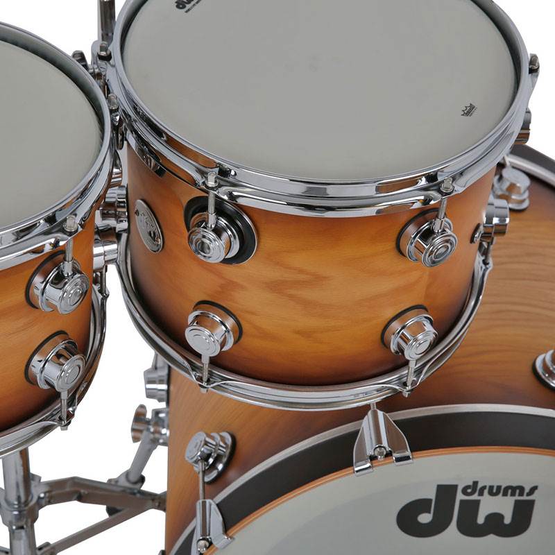 This shell pack features rack toms with Vertical Low Timbre (VLT) - a DW special feature which involves arranging grain patterns of shell plies so the outermost and innermost plies run vertically versus the traditional horizontal. This provides less tension on the shell for greater resonance. In addition, all toms include X Shell construction which complements VLT technology through a revolutionary, full vertical shell cross-lamination on the innerplies.