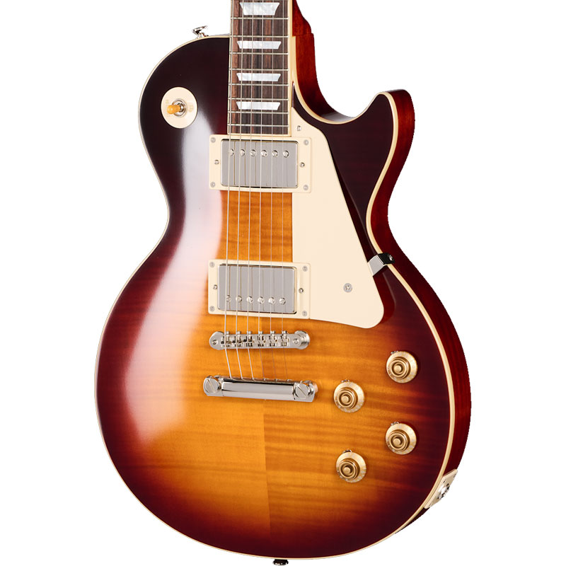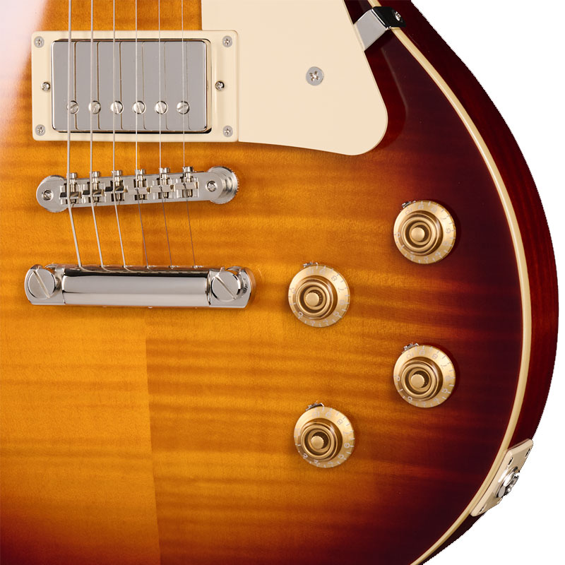 - Telo od originalnog mahagonija ima rezbarenu javorovu kapu koja je prekrivena prelepim furnirom od plamenog javora AAA klase. Elektronika je prvoklasna, sa dva američka Gibson Custombuker hambaker pikapa sa Alnico 3 magnetima koji su ručno povezani sa CTS® potenciometrima, crnim Beauty kondenzatorima od papira u ulju i Switchcraft® prekidačem za izbor pikapa i izlaznim priključkom od 1/4”. Vintidž sjajna završna obrada daje gitari vintadž izgled bez previše staromodnog izgleda, a lepo je upotpunjena niklovanim hardverom, uključujući Epiphone Deluxe „Single Ring” Keystone štimere. Uključena je i braon tvrda kutija sa grafikom Inspired by Gibson Custom i ružičastom plišanom unutrašnjošću. Ovo je savršen Les Paul za svirače koji vole vintadž izgled klasičnog Les Paul Standarda iz 1959. godine, ali ne žele da stave hipoteku ili prodaju kuću da bi ga priuštili.