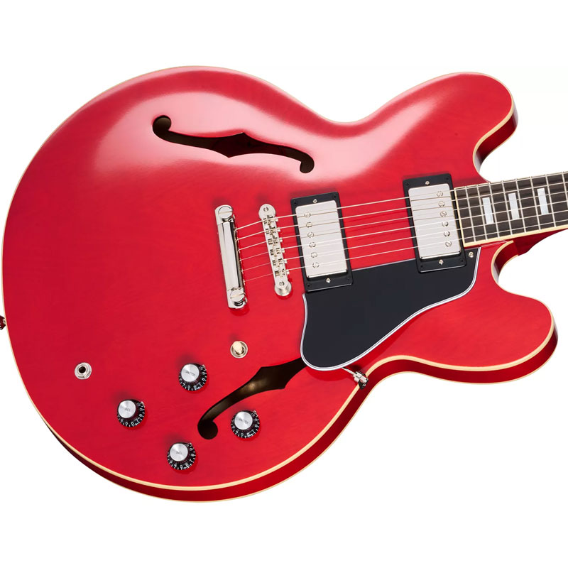 Epiphone 1962 ES-335 Reissue Sixties Cherry (L0561017) u partnerstvu sa Gibson™ Custom, Epiphone sa ponosom predstavlja 1962 ES-355, zapanjujuću rekreaciju vodećeg ES™ modela iz legendarne klase iz 1962. godine. To je vrhunski ES model u svoj svojoj slavi, od dimenzija do kontura, preciznih šablona intarzija i zvučnog iskustva.