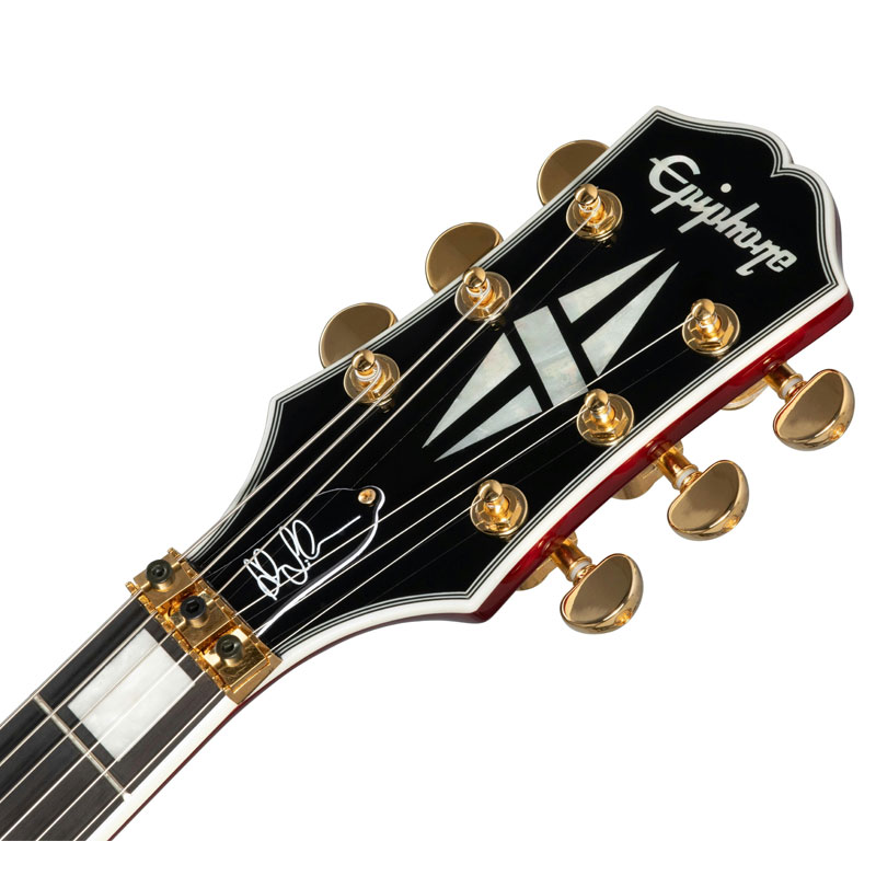 Epiphone Alex Lifeson Les Paul Custom Axcess Ruby (L0560802) U svom radu sa Rush-om tokom nekoliko decenija, Alex Lifeson je redefinisao granice progresivne rok gitare sviranjem koje prevazilazi dramu i hvalisanje, otkrivajući zaista zapanjujuću virtuoznost koju su hvalili i divili se fanovi – i svirači – svih vrsta.