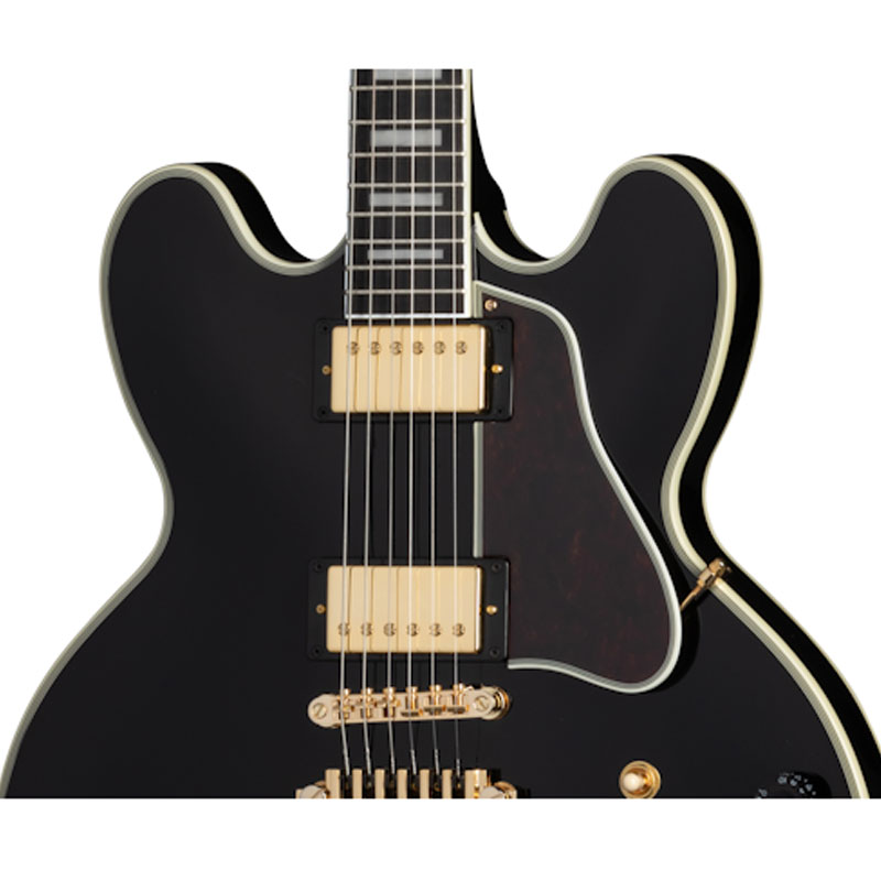Epiphone B.B. King Lucille Ebony (L0560735). zasnovana na čuvenim gitarama bluz legende B.B.Kinga, Epiphone B.B.King Lucille je inspirisana raznim Gibson ES™ modelima na kojima je svirao tokom godina - a svi su nosili ime Lucille. Istaknute karakteristike koje ovu Lucille čine tako zapanjujućom gitarom i posvećenom gitari uključuju zlatni hardver, Grover® Rotomatic® štimere, Graph Tech® navrat, fingerboard od ebanovine sa inlay od bisernih blokova, mesingani poklopac ugraviranim imenom B.B.Kinga, sedefasti inlay Lucille na prednjoj strani glave gitare, višeslojno povezivanje na telu i glavi gitare.
