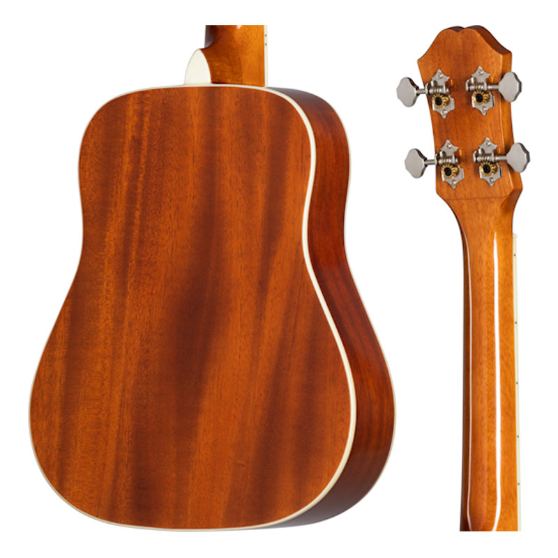 - Hummingbird Studio Tenor Ukulele je fabrički podešen na standardno GCEA štimovanje sa visokim G. Tradicionalna Epiphone Sloped Dovewing glava gitare ima i Epiphone i klasični Crown intarziju u bisernoj boji. Hummingbird Studio Tenor Ukulele se može priključiti na bilo koji PA ili pojačalo zahvaljujući Piezo Film pikapu ispod sedla. Izlazni priključak od ¼” je montiran na obod. Hummingbird Studio Tenor Ukulele je opremljen Premium Open-Back glavom mašine sa odnosom okretanja 14:1. Idealan za putovanja - uključena je torba.