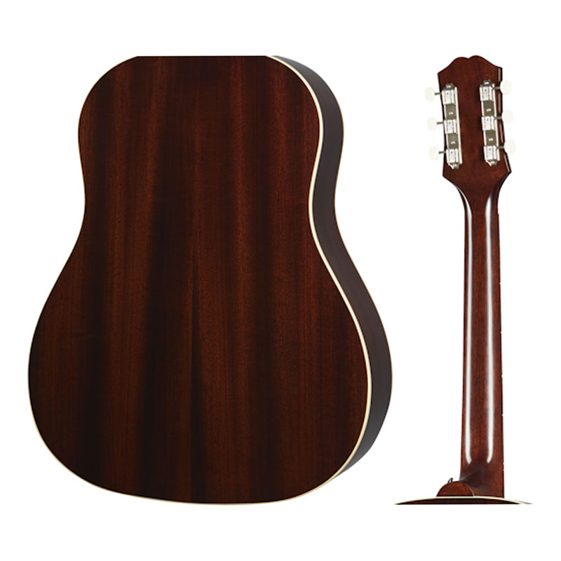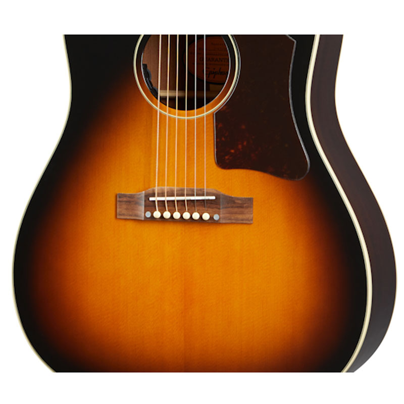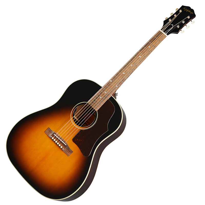 - Klasična J-45 je izbor legendarnih muzičara još od kada je prvi put predstavljena 1942. godine. Poznata kao „The Workhorse“, to je Gibsonov najpoznatiji i najpopularniji model akustične gitare. Sada je Epiphone izdao novu Inspired by Gibson™ J-45™ sa svim karakteristikama koje svirači žele, uključujući konstrukciju od punog drveta, udoban zaobljeni C profil vrata, 20 srednjih džambo pragova, oblik glave gitare u stilu 60-ih Kalamazoo i prelepu završnu obradu „Aged Vintage Sunburst“. Fishman® Presys VT™ pikap i pretpojačalo ispod sedišta čine ovu gitaru spremnom i za scenu.