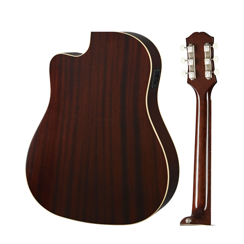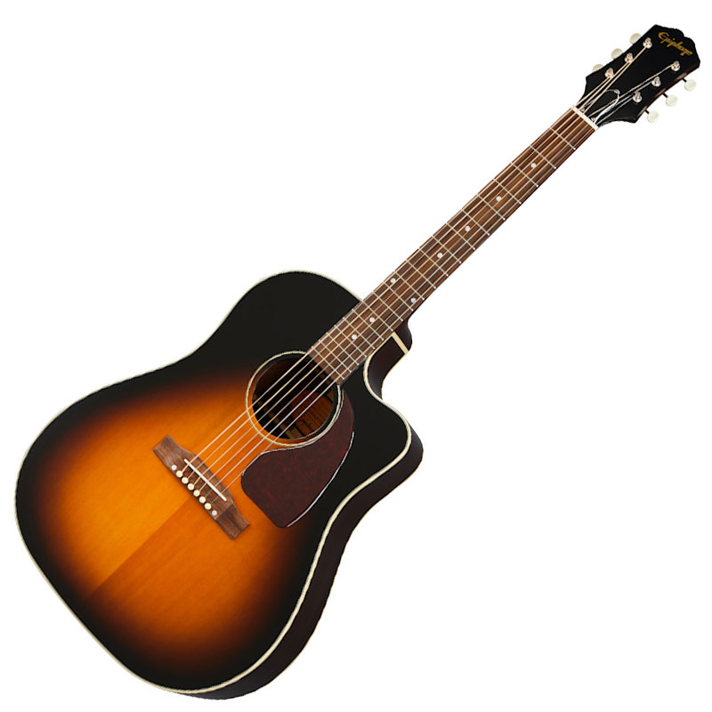 - Legendarni Gibson™ J-45™ je omiljen među muzičarima još od kada je prvi put predstavljen 1942. godine. Sada je Epiphone izdao novi Inspired by Gibson™ J-45 Cutaway koji sviračima pruža poboljšan pristup gornjim pragovima, a zadržava sve karakteristike koje čine J-45 posebnim za početak, uključujući telo Sloped Shoulder sa čvrstom gornjom pločom od sitkanske smreke i čvrstom mahagoni leđom i stranicama, udoban zaobljeni C profil vrata, Fishman® Sonicore pikap ispod sedišta i Fishman Presys II pretpojačalo sa kontrolama jačine zvuka i tona, kao i prelepu Aged Vintage Sunburst završnu obradu.