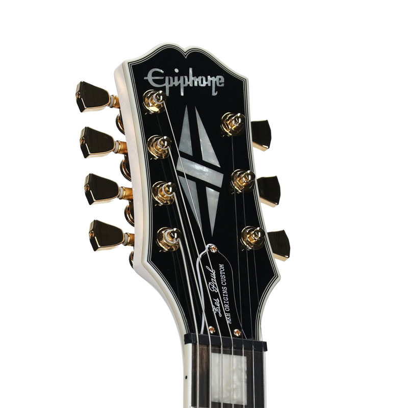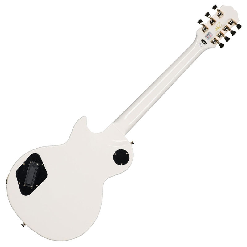 - Zlatni hardver, uključujući Grover® Rotomatic® štimere za zaključavanje sa Tulip dugmadima, i klasični Les Paul Custom dizajn čine ovu gitaru izuzetnom na sceni. Dostupna je u sjajnim završnim obradama Ebony i Bone White. Uključena je i hard case po meri.