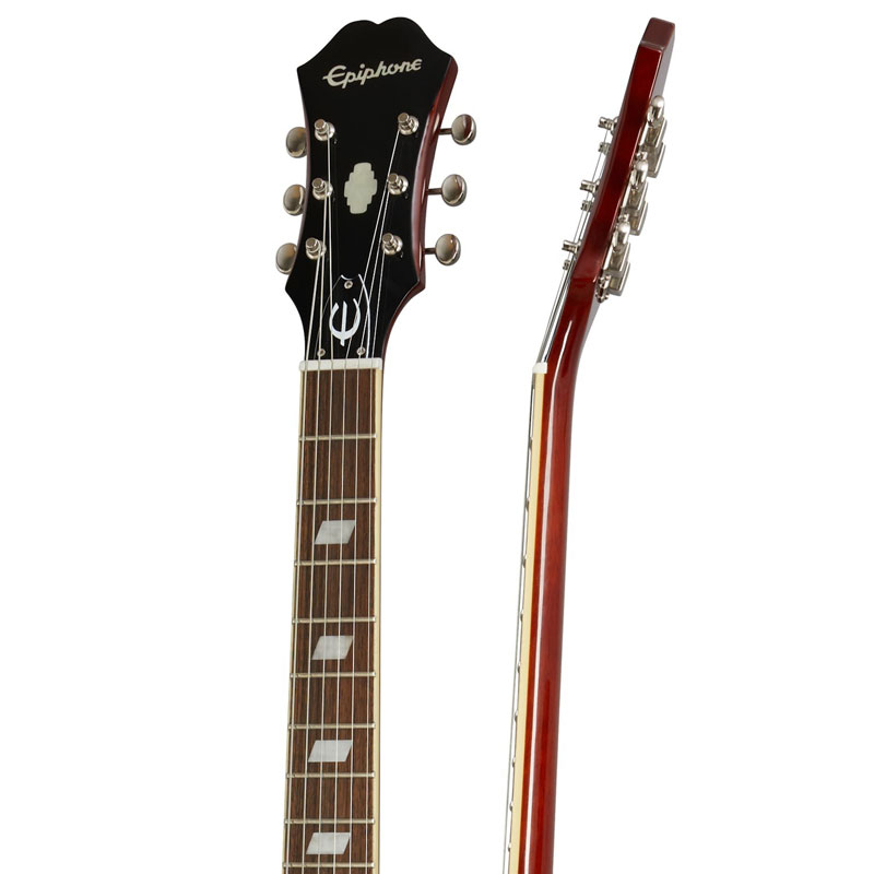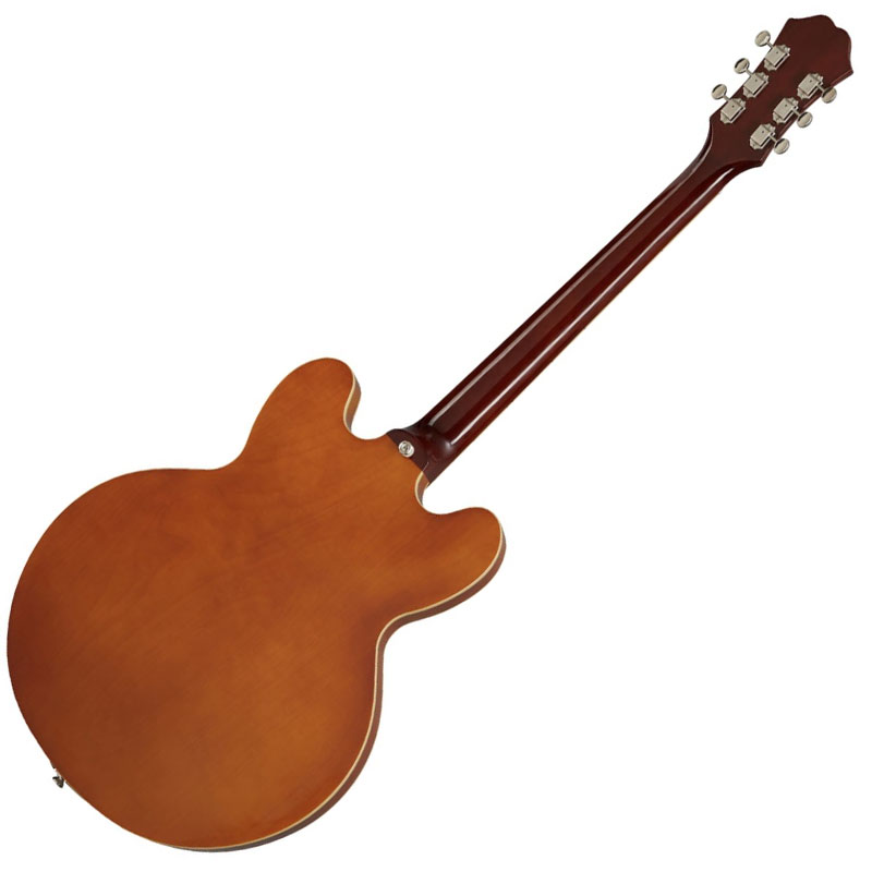 - Telo Epiphone Riviera je napravljeno od jakog slojevitog javora, koji se koristi za oblikovanje gornjeg dela, zadnje strane i bočnih strana. Dajući instrumentu puno živosti, definicije i akustične jačine zvuka, ovo je upareno sa čvrstim javorovim blokom tona koji stvara neverovatan traj i rezonancu.