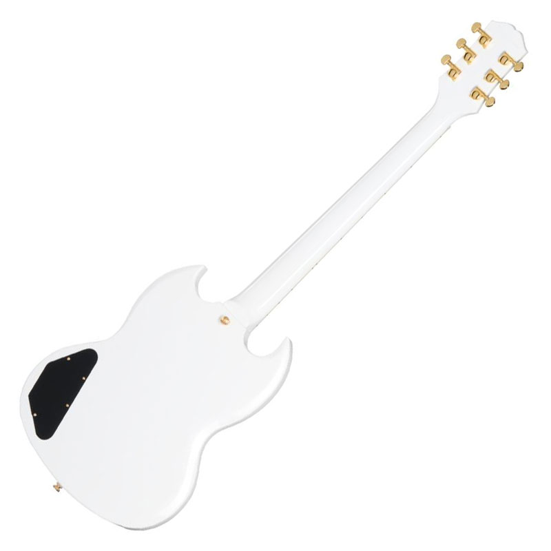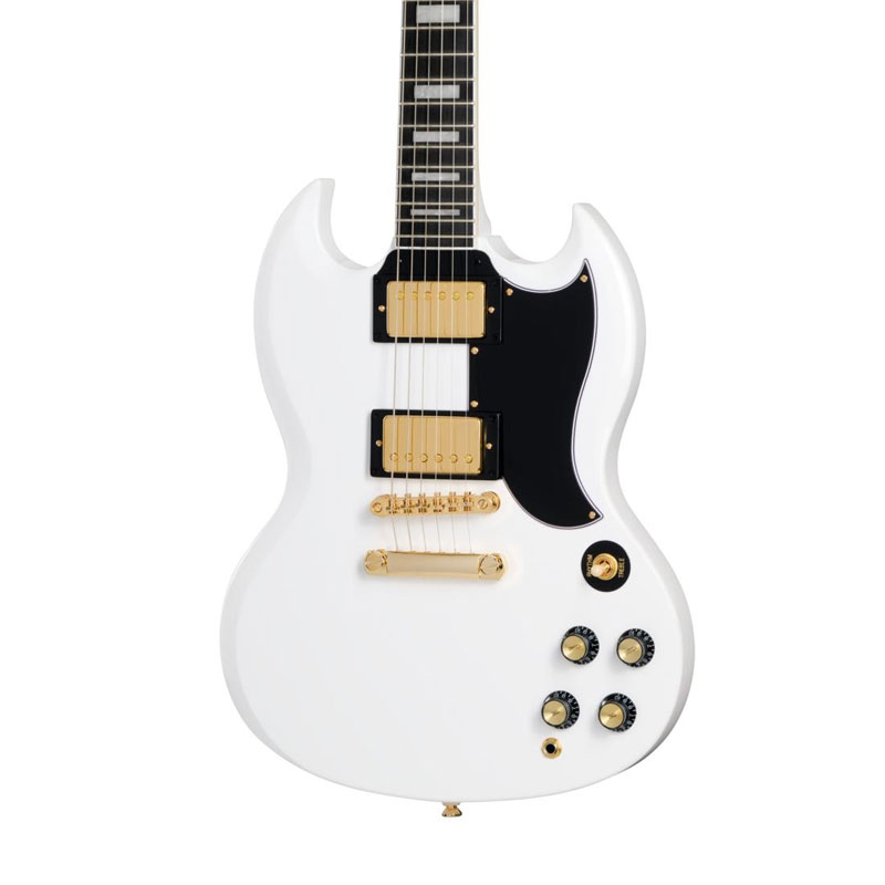 Epiphone SG Custom Alpine White (L0560965) iz nove kolekcije Inspired by Gibson™ Modern predstavlja legendarnu SG™ solid body gitaru u alpine white finišu. Telo od mahagonija sa dvostrukim izrezom koje pruža izuzetan pristup svim 22 pragovima. Zalepljeni vrat od mahagonija doprinosi poznatom održivosti ovog modela. Vrat ima 1960 SlimTaper C profil koji nije baš tako tanak kao neki SlimTaper profili vrata, ali je i dalje brz i udoban za sviranje. Vrat je prekriven žičanom pločom od ebanovine opremljenom sa 22 srednja džambo praga i ukrašen je Custom bisernim blok intarzijama. Radijus grifa od 12 inča je podjednako udoban i pogodan za sviranje akorda u prvoj poziciji i za zagibe žica dalje uz vrat, bez rizika da će vam zagibi iskočiti.