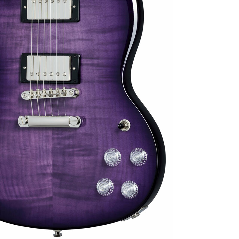 Epiphone SG Modern Figured Purple Burst (L0560867) iz nove kolekcije Inspired by Gibson™ predstavlja legendarnu SG™ solid body gitaru.