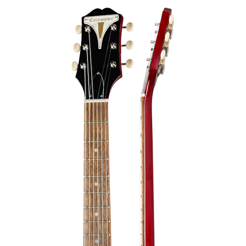 - Epiphone Wilshire dolazi opremljen lepljenim vratom od mahagonija sa srednjim C profilom, grifom od indijskog lovora sa radijusom od 12" i 22 srednja džambo praga, 1 kontrolom jačine zvuka i 1 kontrolom tona sa CTS® potenciometrima, i Epiphone LockTone™ Tune-O-Matic™ bridgeom and Stop Bar tailpieceom.