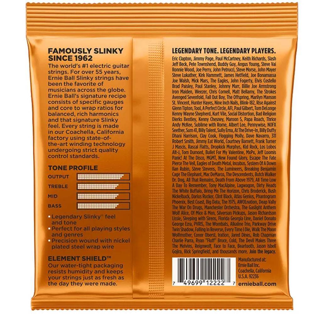 - Hybrid Slinky varijanta se odlikuje odavno dokazanim kvalitetima Slinky familije. Šestougaono jezgro od visokougljeničnog čelika sa kalajnom presvlakom, niklovana čelična košuljica kod motanih žica. Besprekorna završna obrada obezbeđuje prijatan osećaj pod rukom, dok je superioran ton već decenijama zaštitni znak Ernie Ball žica. Debljina seta: .009, .011, .016, .026w, .036w, .046w.