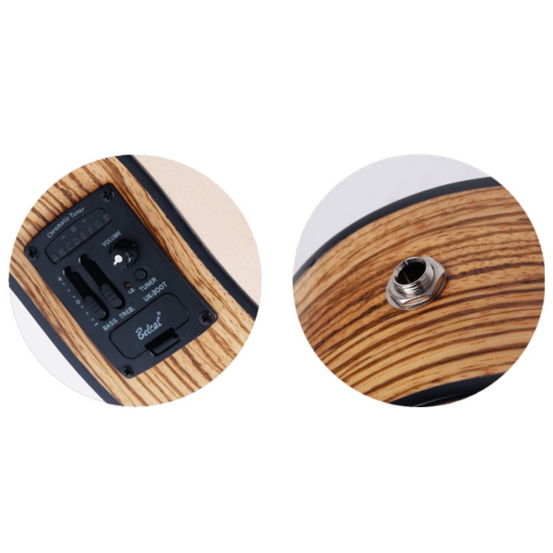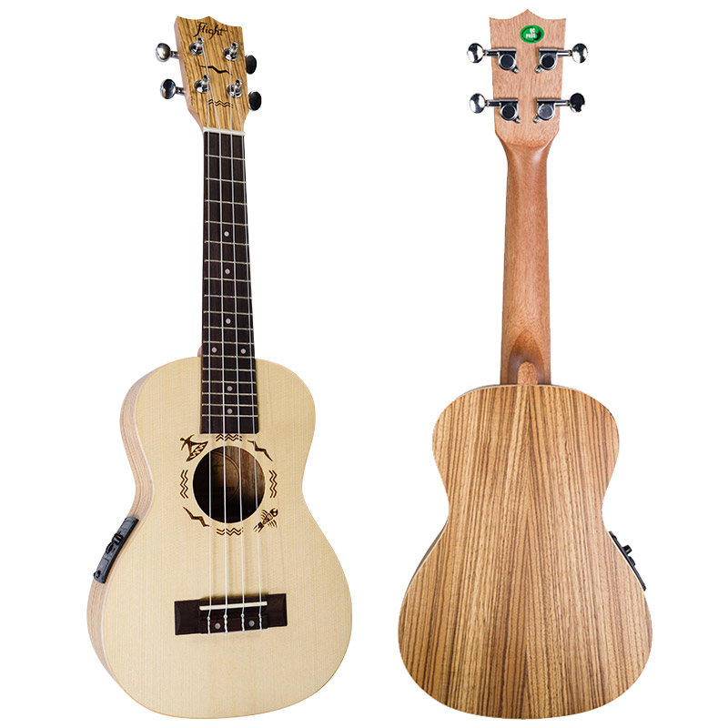 Flight DUC525CEQ Concert ukulele je ozvučena verzija 525 modela iz Designer serije. Koja spojem egzotičnih materijala, kvalitetnom izradom i detaljima štrči u svakoj konkurenciji. Gornja ploča od smreke, zadnja ploča i stranice od afričkog okoume drveta, kobilica i fretboard od orahovine, nut i sedlo od kosti. Uz ukulele dolazi i lagana i eleganta torba.