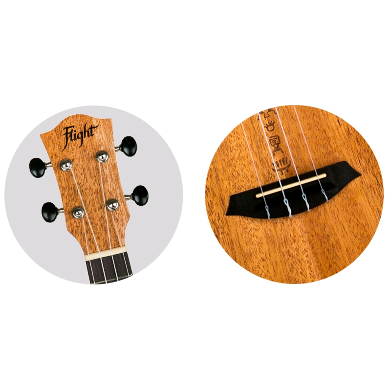 Flight DUS371 soprano ukulele pripada Designer seriji ukulelea. Telo od afričkog mahagonija nudi neverovatno topao, a ipak odlično definisan ton. Blago zaobljena leđa doprinose glasnoći koja prevazilazi veličinu instrumenta. Precizna izrada već godinama je jedna od glavnih vrlina Flight proizvoda. Vrat od afričkog okoumea osim estetike omogućava i veliku stabilnost, kao i prijatan osećaj pod rukom. Lepo koncipiran, odlično izveden ukulele, pogodan za sve sviračke nivoe. U kompletu sa elegantnom torbom.