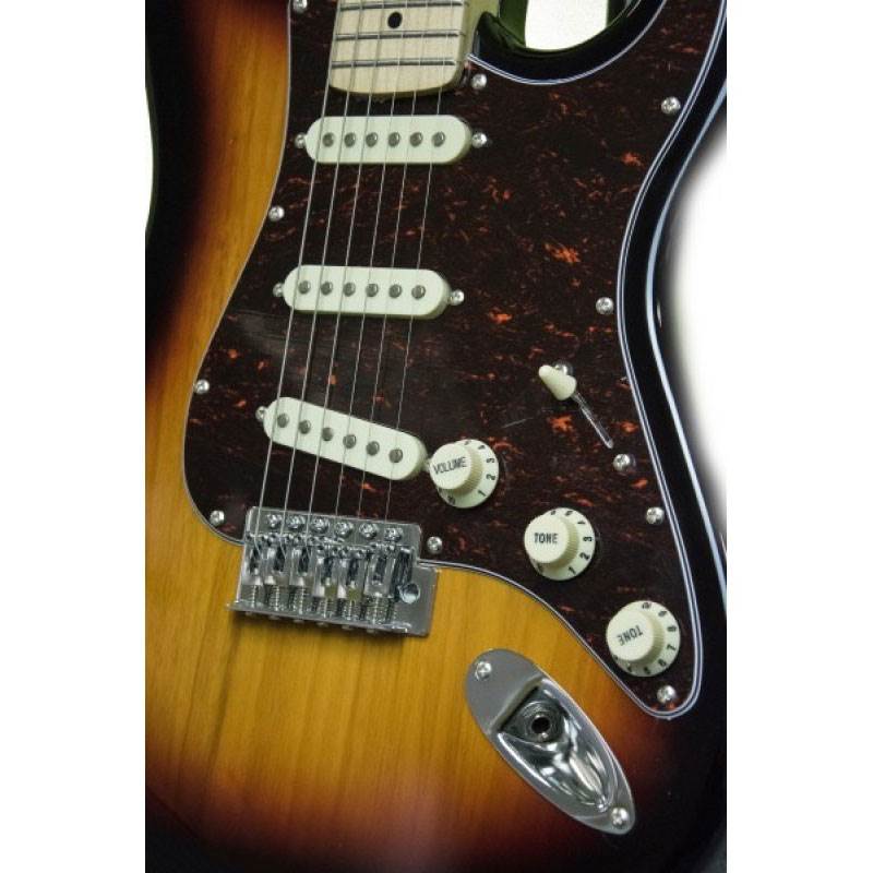 - Flight EST11-V2 SB električna gitara nudi neverovatnu vrednost za novac. Trup od topole, punog preseka, u standardnoj strat konfiguraciji. Javorov vrat sa 22 praga, i udobnim C profilom umerene debljine. Tradicionalni 6-point tremolo, i tri kristalno jasna single coil magneta zaokružuju paket. Veoma svirljiv instrument, idealan za sigurne prve korake na električnoj gitari. Topla preporuka za učenike i hobiste svih uzrasta.