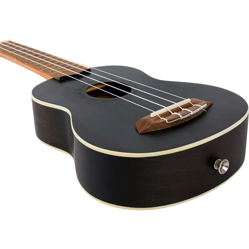 - Premium Features: Arched back, Open Geared Tuners, Bone Nut and Saddle, Laser Engraved Rosette, Side Dots, Strap Button