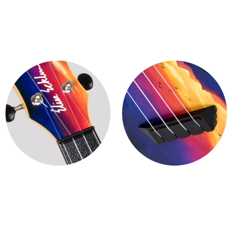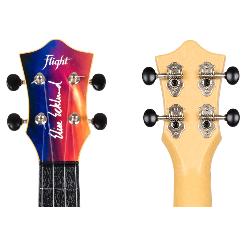 Flight TUS-EE Sunset Elise Ecklund travel ukulele sa pravom nosi potpis mlade youtube zvezde. Namenski dizajniran i izrađen od plastike, nudi neverovatan kvalitet u ovom rangu i izdržljivost sa kojom drveni modeli ne mogu da se takmiče. Precizna izrada već je tradicionalna odlika svih Flight ukulelea. Zahvaljujući većoj dubini korpusa, Flight TUS-EE Sunset nudi veću glasnoću i nosivost u odnosu na standardni soprano. Vrat i kotna ploča od ABS-a potpuno su imuni na promene temperature i vlažnosti, obezbeđujući uvek optimalnu svirljivost. Gornja ploča od lipe omogućava jasan, zvonak ton, dok specijalni dizajn kobilice i nulti prag doprinose preciznoj intonaciji. Savršen izbor za putovanja u bilo koji deo sveta, izlete, letovanja, kampovanja, i sve druge scenarije. Upečatljiva sunset šara dodatno doprinosi atraktivnosti. Instrument dolazi u kompletu sa laganom i izdržljivom torbom.