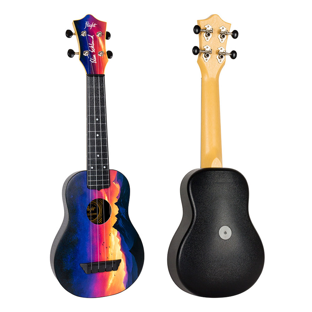- Zahvaljujući većoj dubini korpusa, Flight TUS-EE Sunset nudi veću glasnoću i nosivost u odnosu na standardni soprano. Vrat i kotna ploča od ABS-a potpuno su imuni na promene temperature i vlažnosti, obezbeđujući uvek optimalnu svirljivost. Gornja ploča od lipe omogućava jasan, zvonak ton, dok specijalni dizajn kobilice i nulti prag doprinose preciznoj intonaciji. Savršen izbor za putovanja u bilo koji deo sveta, izlete, letovanja, kampovanja, i sve druge scenarije. Upečatljiva sunset šara dodatno doprinosi atraktivnosti. Instrument dolazi u kompletu sa laganom i izdržljivom torbom, kaišom, Flight FTC-33 štimerom, Elise Ecklund kapodasterom.