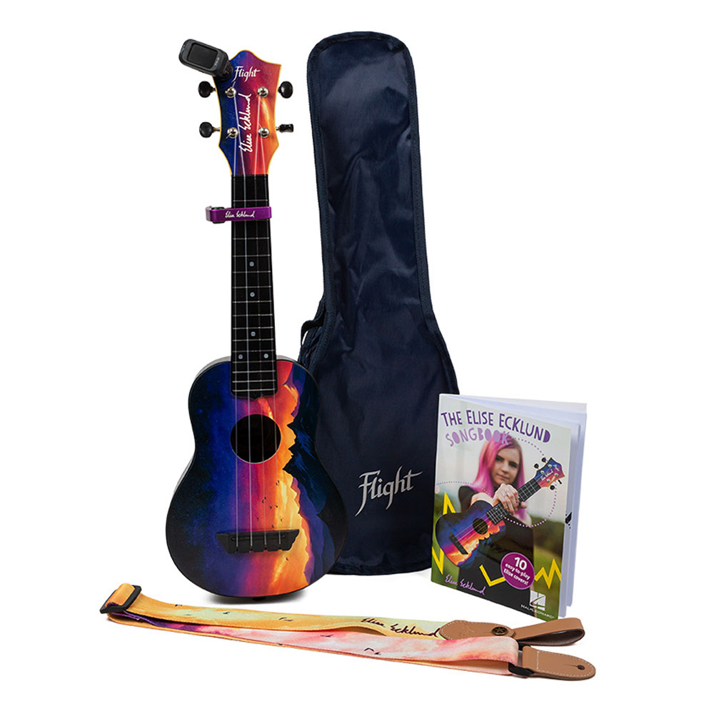 Flight TUS-EE Sunset travel ukulele set sa pravom nosi potpis mlade youtube zvezde. Namenski dizajniran i izrađen od plastike, nudi neverovatan kvalitet u ovom rangu i izdržljivost sa kojom drveni modeli ne mogu da se takmiče. Precizna izrada već je tradicionalna odlika svih Flight ukulelea.