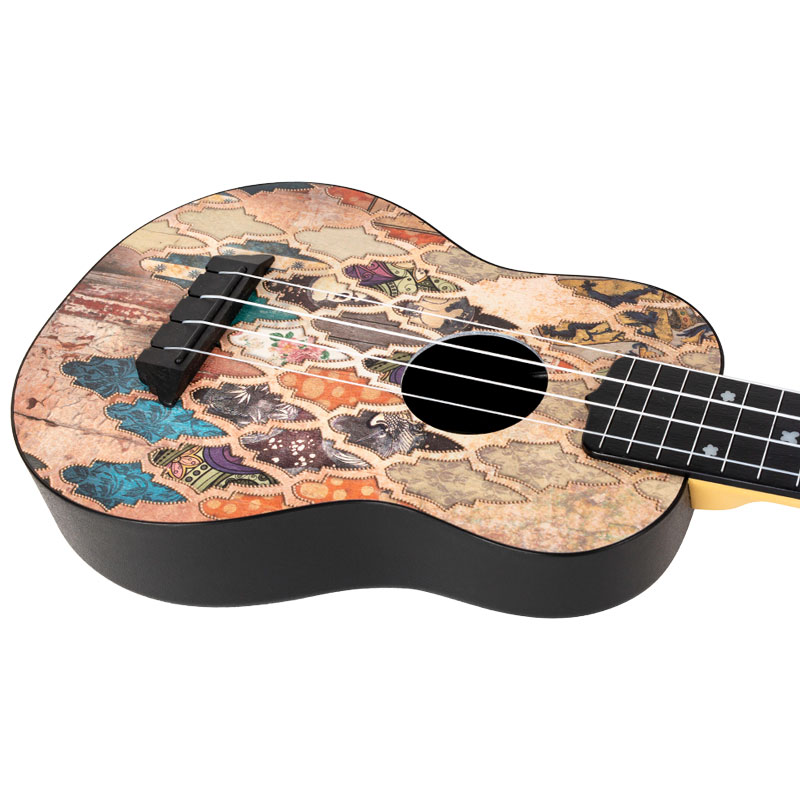 - Vrat i kotna ploča od ABS-a potpuno su imuni na promene temperature i vlažnosti, obezbeđujući uvek optimalnu svirljivost. Savršen izbor za putovanja u bilo koji deo sveta, izlete, letovanja, kampovanja, i sve druge scenarije. Atraktivna geometrijska šara dodatno doprinosi atraktivnosti. Ukulele dolazi u kompletu sa laganom i izdržljivom torbom.