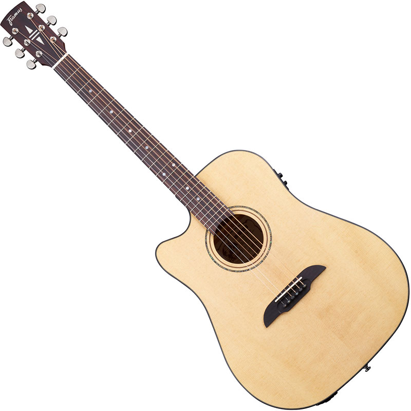 Framus FD 14 SV CE VSNT Lefthand with EQ, Legacy Series left handed electric-acoustic guitar with Cutaway. Dreadnought body shape. Scale: 648 mm, Top: Solid A Sitka Spruce, Sides: Laminated Mahogany, Back: Laminated Mahogany, Bridge: Indian Rosewood, Saddle: Bone, compensated, Neck: Mahogany, with trussrod, satin finish, Neckprofile: C-profile, Headstock: Indian Rosewood veneer, with Mother of Pearl Framus logo and inlay Tuners: Closed, gear ratio 15:1, Nut: Bone, 45 mm / 1 3/4", Frets: 21, Medium, Fretboard: East-Indian Rosewood, Fretboard Radius: 16", Bridge Pins: Ebony with mother of Pearl Inlay Dots, Electronics: Fishman Isys + Preamp with Sonicore Pickup, Strings: Cleartone Acoustic 012 - 053 (7412), Finish: Vintage Transparent Satin Natural Tinted