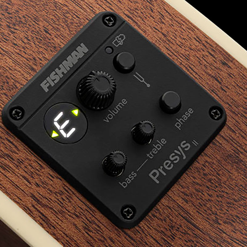 Framus FP 14 M NS P Parlor. with Presys II EQ, Legacy Series electric-acoustic guitar with parlor body shape. Scale: 628 mm, Top: Solid Mahogany, Sides: Laminated Mahogany, Back: Laminated Mahogany, Bridge: Indian Rosewood, Saddle: Bone, compensated. Neck: Mahogany, with trussrod, satin finish, Neckprofile: C-profile, Headstock: Rosewood veneer, with Mother of Pearl Framus logo and inlay, Tuners: Closed, gear ratio 15:1, Nut: Bone, 45 mm / 1 3/4", Frets: 21, Medium, Fretboard: Indian Rosewood, Fretboard Radius: 16", Electronics: Fishman Isys + Preamp with Sonicore Pickup, Bridge Pins: Ebony with mother of Pearl Inlay Dots, Strings: Cleartone Acoustic 012 - 053 (7412). Finish: Natural Transparent Satin