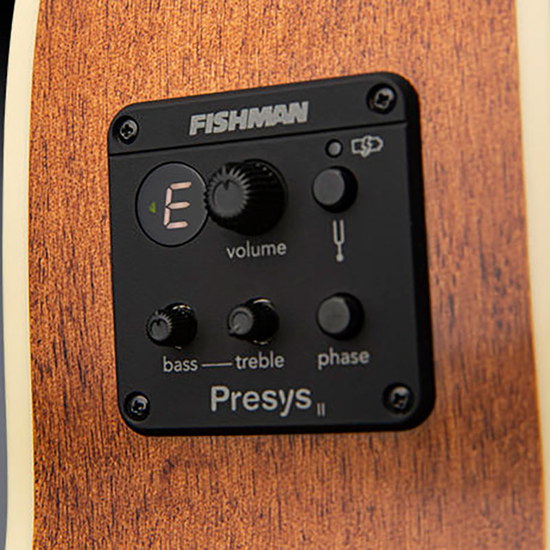 Framus FP 14 M VS Parlor with Presys II EQ, Acoustic guitar from the Framus Legacy series. It features a Parlor body shape with cutaway and Vintage Sunburst Transparent High Polish finish. The guitar is made of quality mahogany and ebony wood. It provides a 628 mm scale, 16-inch radius fingerboard, Fishman Sonicore piezo pickup, Fishman Presys II preamplifier and 18 frets of medium size. The package includes a hex key tool and spare bridge pin as well as a black self-adhesive pickguard.