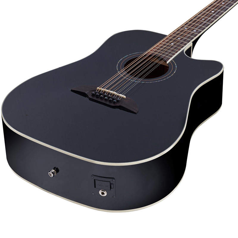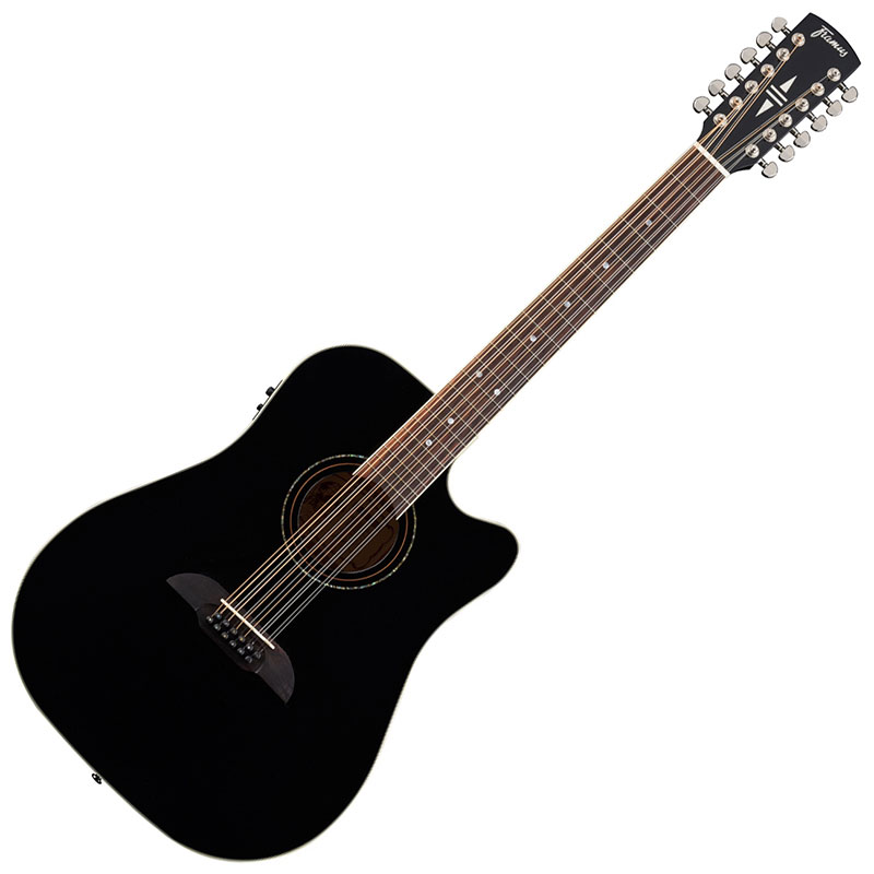 Framus FD 14 S BK CE 12-String with EQ. Strumming on a 12 string guitar is fun but may be challenging as there are simply more strings to press. The standard size 1.87" / 48mm nut width of the Framus FD 14 S BK CE 12 makes things a little easier as you do not need to cope with a too wide nut and the relatively slim neck shape helps too. The FD 14 S BK CE 12 is great looking in its solid black high polish finish, although if you're not into black finishes it is also available with Natural Transparent Satin finish. Having the on board Fishman Isys + preamp and Sonicore piezo combination adds one more reason to give the Framus FD 14 S BK CE 12 a go.