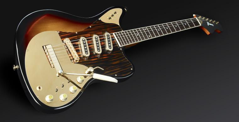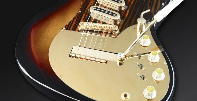 Framus’ Vintage 5/168 Golden Strato De Luxe is based on the company’s ’60s guitars, with a mahogany body, bolt-on maple neck and bound rosewood fingerboard. It uses Framus Vintage machine heads, Framus Vintage single-coil pickups and has dot inlays, 21 medium jumbo nickel-silver frets, gold hardware, and a Tune-o-matic bridge with a vintage vibrato system.