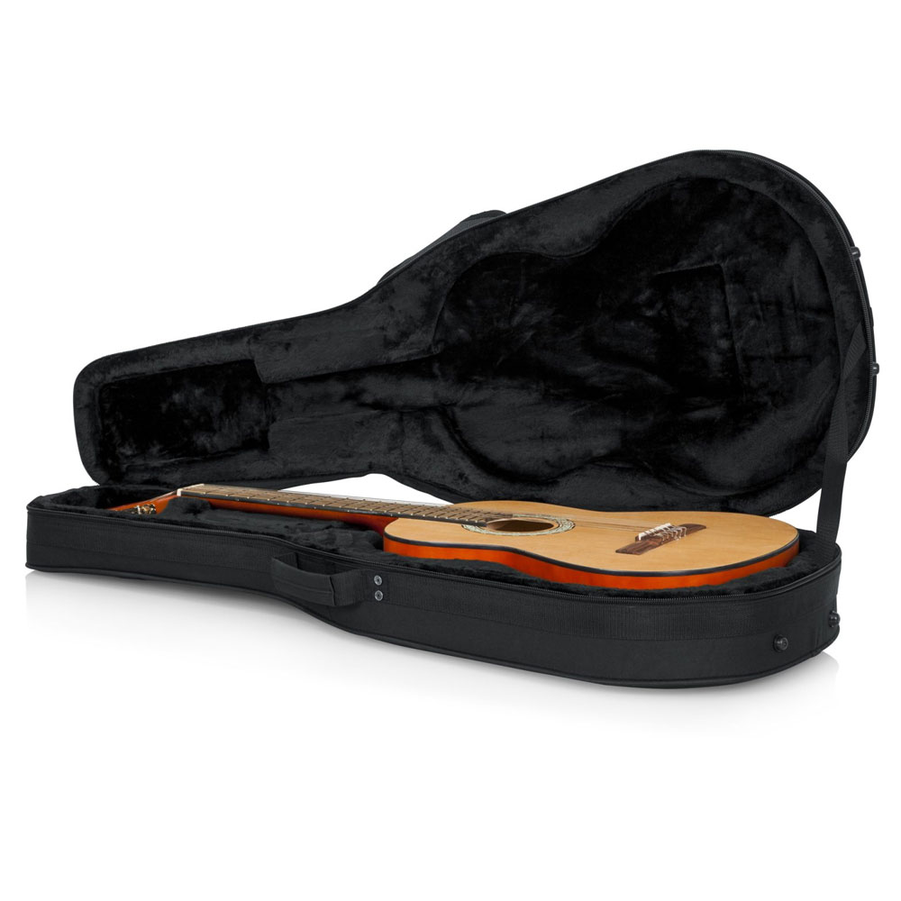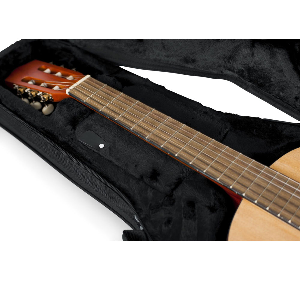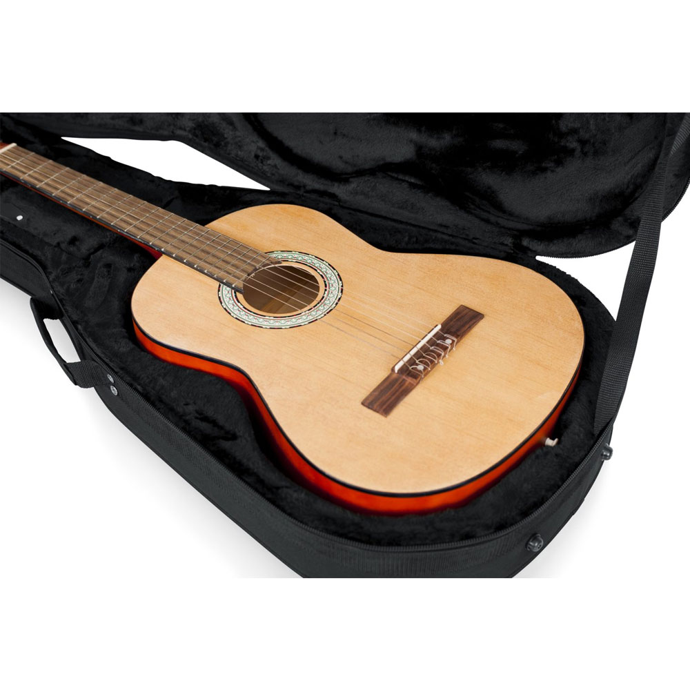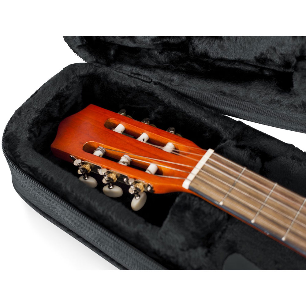 Gator GC-Classic soft case za klasičnu gitaru. Čvrsta, 600-Denier najlonska spoljašnjost formira izdržljiv, vodootporan spoljni štit. Gusto jezgro od EPS pene i plišana obloga čuvaju vašu gitaru od udaraca i ogrebotina.