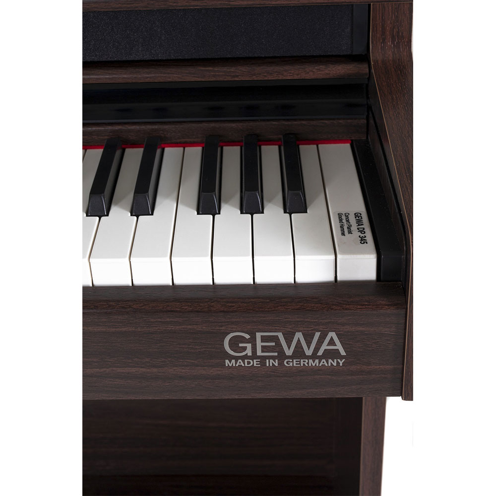 Gewa DP 345 RW električni klavir (120.346) je najnoviji model proslavljene nemačke kuće Gewa. U pitanju je visoko kvalitetan električni klavir nemačke proizvodnje sa 88 otežanih dirki. Visoko kvalitetni semplovi su „skidani“ sa Steinway D274 koncertnog klavira i „teški“ su preko 1 GB. Concert Pianist klavijatura poseduje 88 dirki, koje su otežane po zonama. Dirke poseduju Ivory Touch površinu koja na dodir oponaša slonovaču. Svirljivost i osećaj su gotovo identični kao prilikom sviranja pravog polukoncertnog klavira.