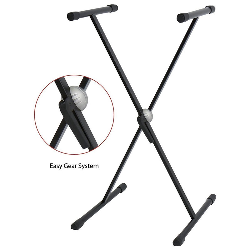 Gewa jednostruki X stalak za klavijature 900550. Crne boje, podesiv po visini. Potpuno rasklopiv. Idealan za sve tipove klavijatura. Pouzdan i dovoljno čvrst za žive nastupe, vežbu kod kuće ili za studio. Izuzetno lagan za transport, a obzirom da se rasklapa jako lako se transportuje.