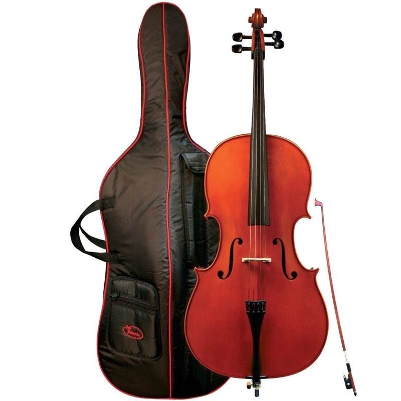 Gewa Outfit Ideale violončelo veličine 4/4. Pored instrumenta, u cenu je uključeno gudalo, futrola, kobilica i kalafonijum. Prednja i zadnja ploča instrumenta su izraðeni od punog drveta, zbog čega se instrument preporučuje naprednim školskim i studentskim sviračima, izuzetno zahvalnog za takmičenja, solo izvoðenje ili orkestarsko izvoðenje. Set-up podešavanje je obavljeno u fabrici, što znači da je odmah spremno za upotrebu bez dodatnog majstorskog podešavanja.