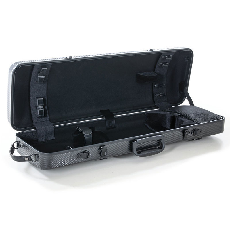 Gewa Polycarbonate 2.4 PS350.185 kofer za violinu u crnoj boji. Četvrtasti - oblong ultralaki kofer od polikarbonata za violinu veličine 4/4. Veoma čvrst a u isto vreme veoma lagan kofer koji štiti violinu, gudala i prateći pribor od fizičkih udaraca i temperaturnih promena po pristupačnoj ceni. Gewa Polycarbonate 2.4 PS350.185 kofer za violinu u poklopcu poseduje mesta za dva violinska gudala veličine 4/4 i prateću torbicu na poleđini kofera za odlaganje nota. Prateća torbica je drikerima vezana za kofer i može se skinuti namestiti po potrebi.
