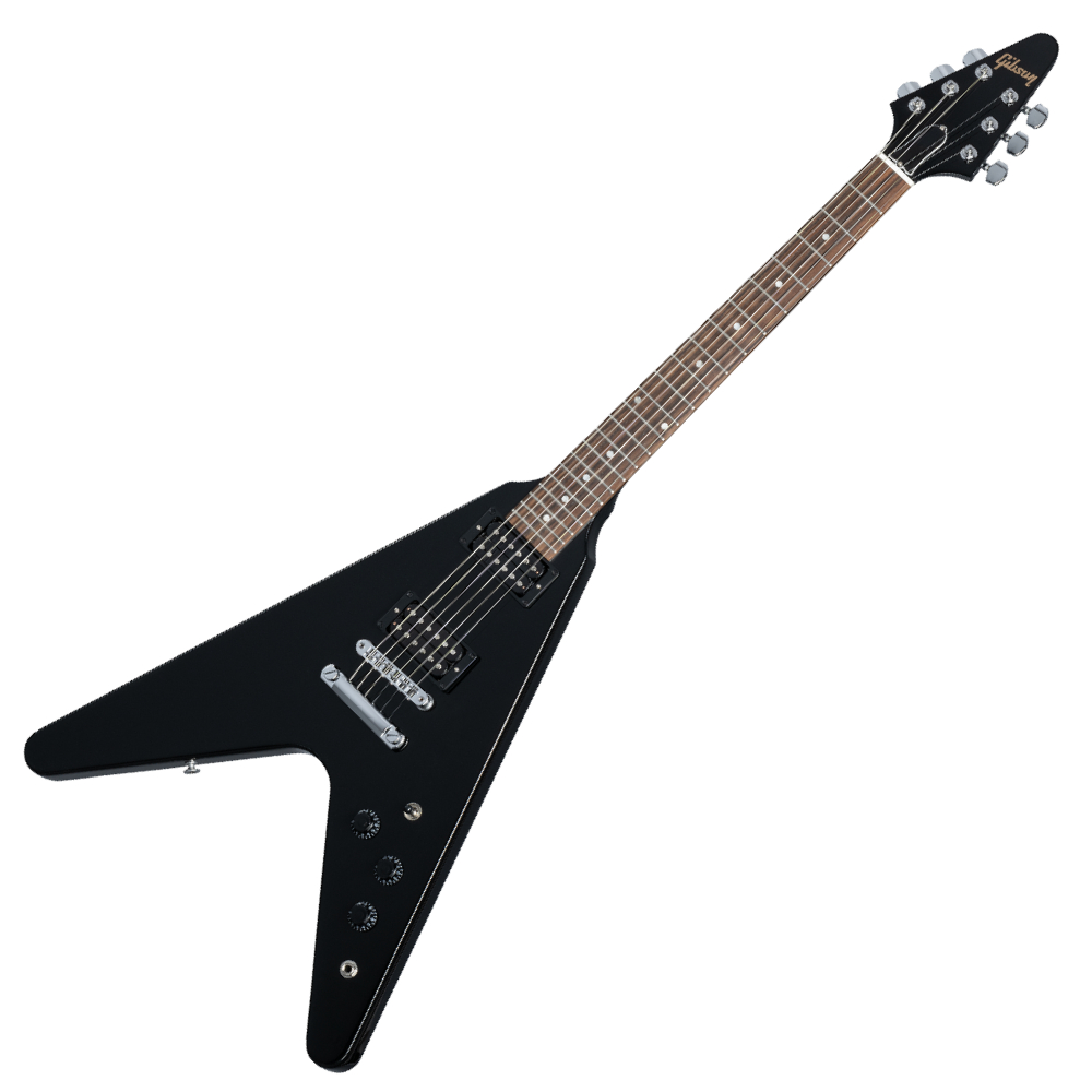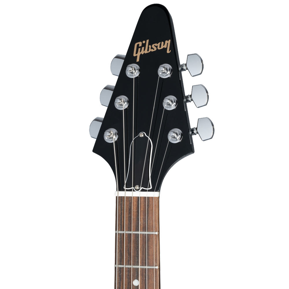 - Gibson 80s Flying V je baziran na veoma traženim modelima iz 1984. godine. Ima brzi SlimTaper™ vrat od mahagonija sa grifom od palisandrovog drveta. Kućno oblikovano telo od mahagonija opremljeno je novim Tribute pikapima iz 80-ih koji precizno hvataju jedinstveni zvuk debelog tona i bogat sustajn modela iz tog doba. Sada je dostupan u boji ebanovine.