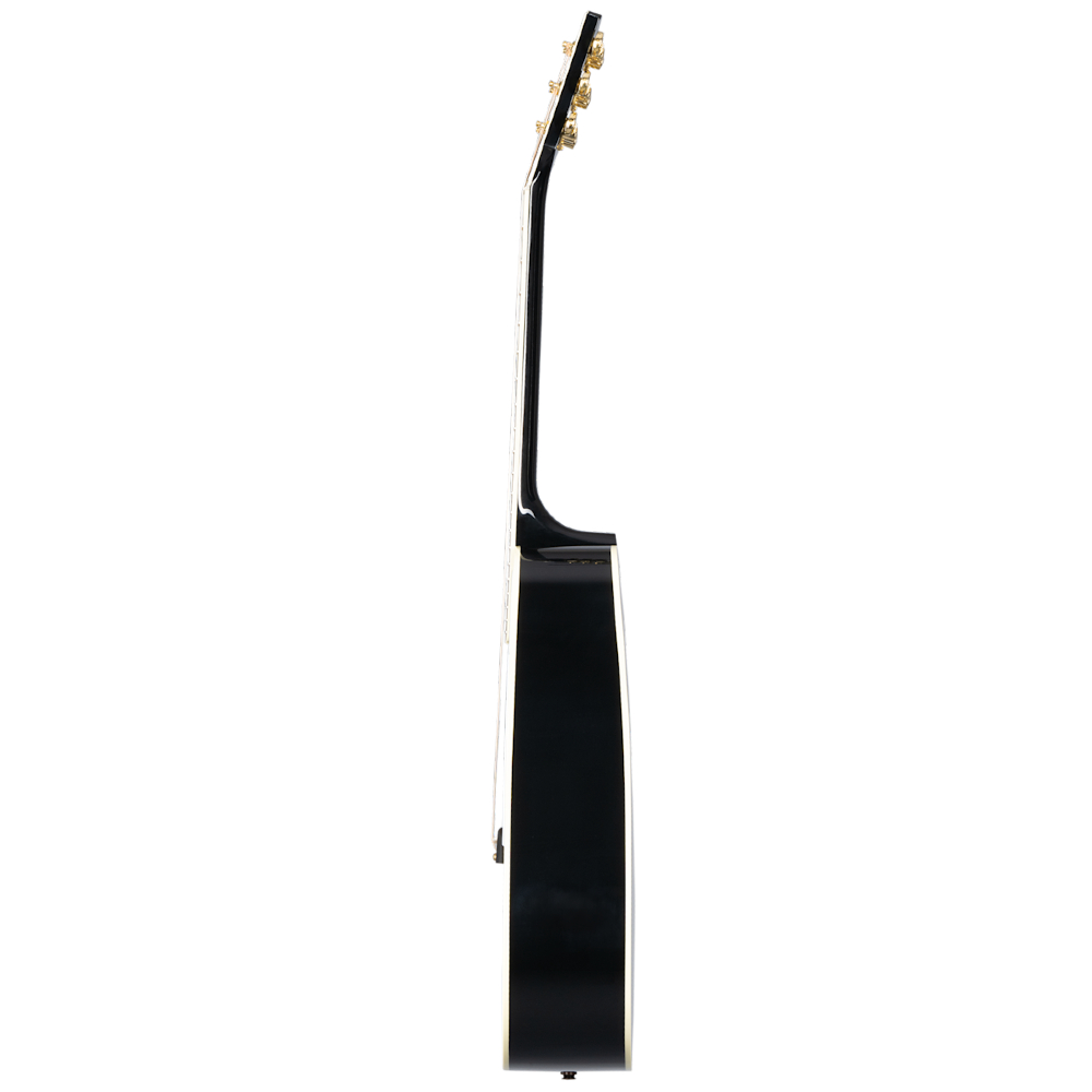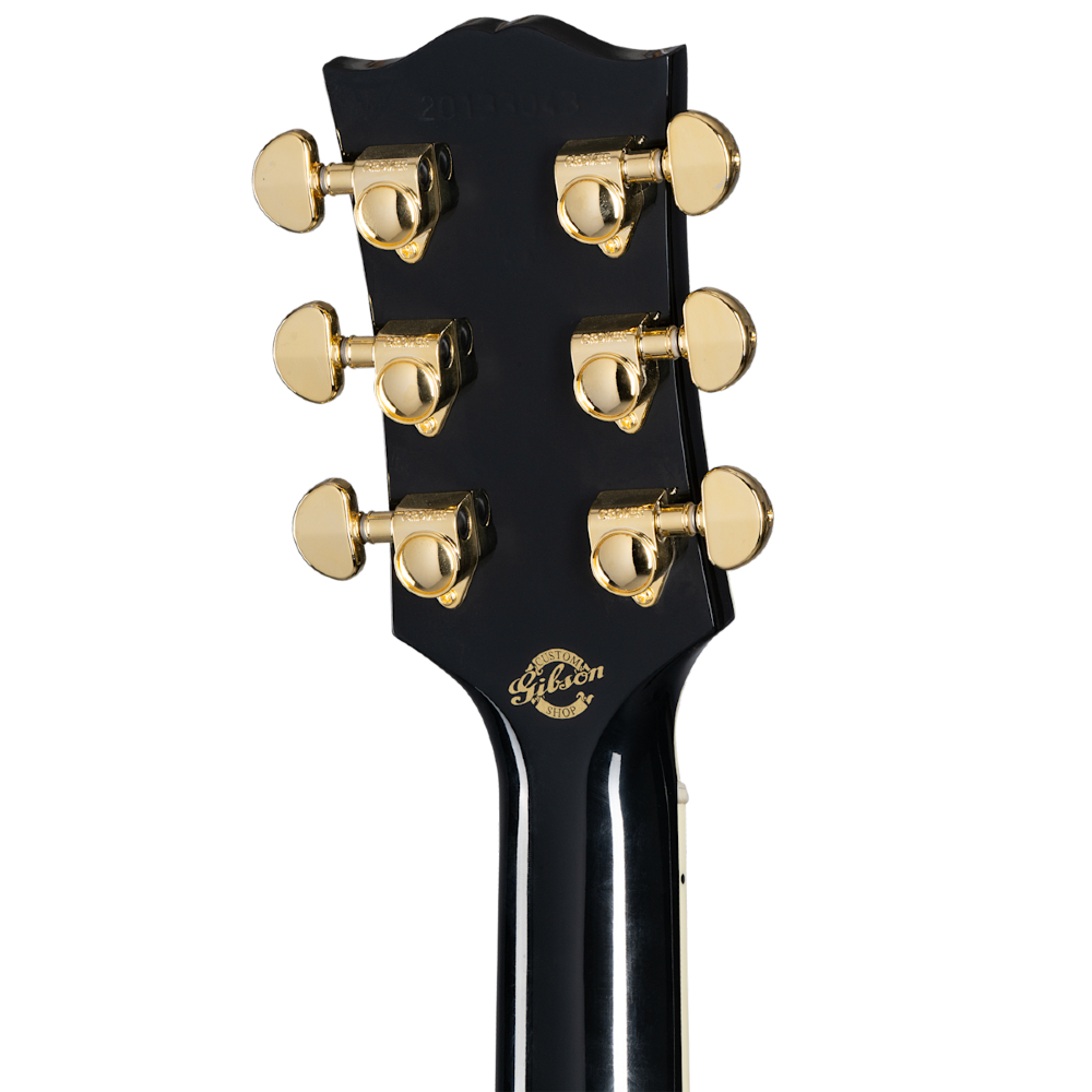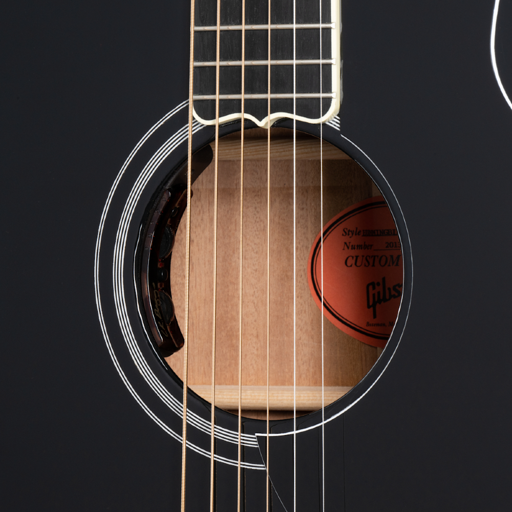 On se nadovezuje na klasične karakteristike Hummingbird-a koje svirači očekuju, uključujući gornju ploču od sitkanske smrče, leđa i stranice od mahagonija i vrat od mahagonija dužine 24,75 inča sa okruglim profilom, a dodaje i kozmetiku inspirisanu Les Paul™ Custom-om, uključujući završnu obradu od nitroceluloznog laka Ebony, višeslojni povez na gornjoj i zadnjoj strani, glavu gitare u stilu Les Paul-a sa Custom dijamantskim umetkom od sedefa, ploču grifa od ebanovine sa sedefnim Custom Block umetcima i zlatne Grover® Rotomatic® štimere.