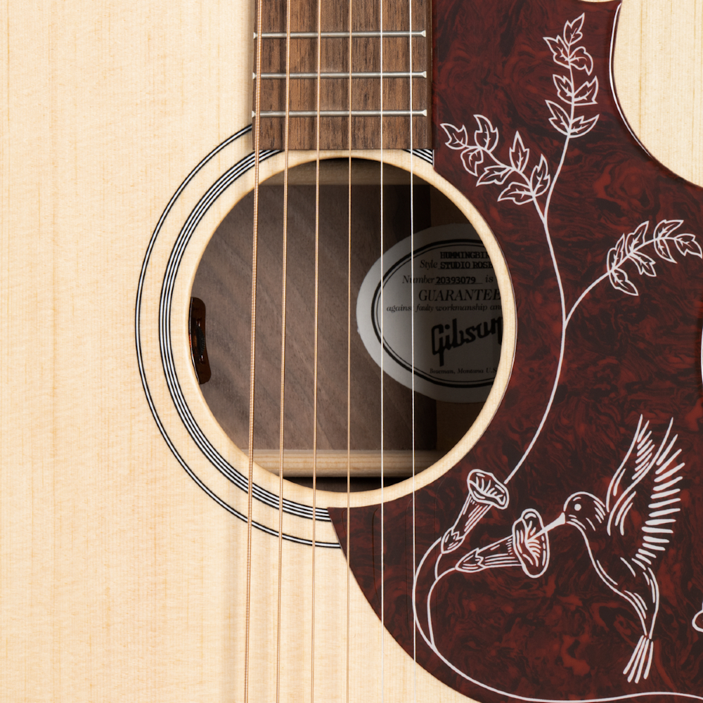 Ima telo pune dubine za poboljšani tonski odziv i saten nitroceluloznu završnu obradu, što mu daje izgled i osećaj dugo cenjenog muzičkog pratioca. Dostupan u Satin Natural i Satin Walnut Burst završnim obradama, Hummingbird Studio Walnut ima L.R. Baggs™ Element Bronze aktivni piezo pikap ispod sedišta za lako „plug-and-play“ studijskog kvaliteta bilo gde.