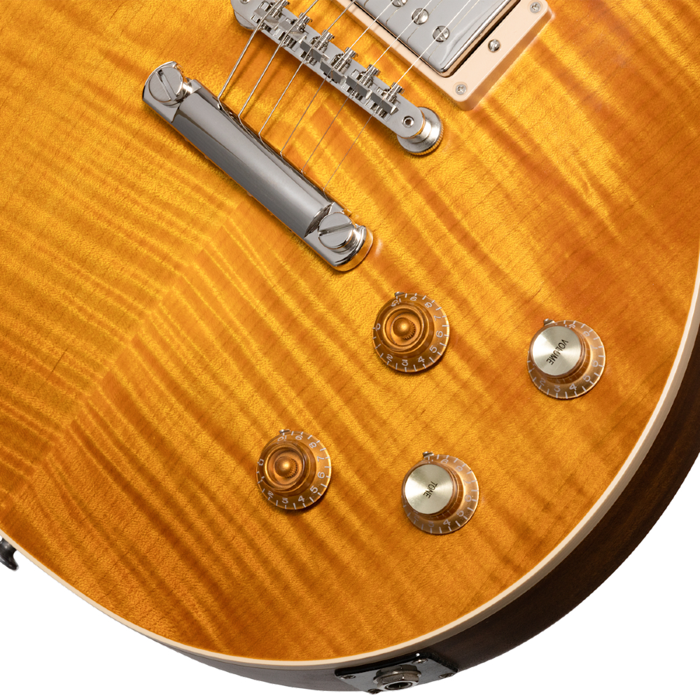 - U srcu njegovog tona nalaze se specijalno navijani Grinibaker pikapi – zajedno sa obrnuto montiranim pikapom na vratu sa obrnutim polaritetom koji replicira Grinijev legendarni kvalitet van faze. Ručno ožičene kontrole sa Orange Drop® kondenzatorima u tonskom kolu pružaju gladak, prirodan prelaz koji vam omogućava da bez napora prelazite sa dimljenih čistih tonova na režeći overdrive. ABR-1 Tune-O-Matic™ most, aluminijumski Stop Bar zadnji deo i Grover® Rotomatics štimeri rade u harmoniji kako bi maksimizirali sustin i rezonancu – savršeno za isticanje suptilnih nijansi u svakoj noti.