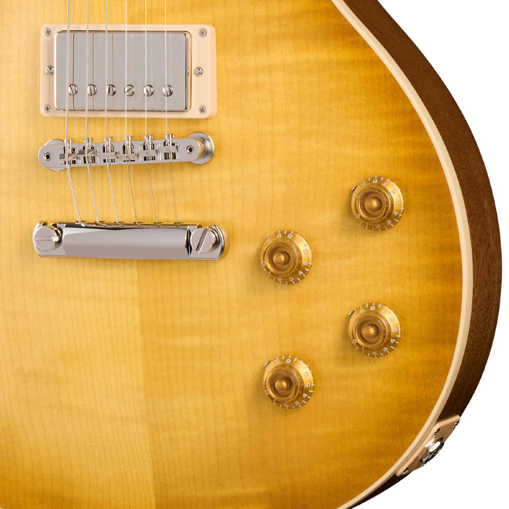 Les Paul™ Standard 50s Figured Top vraća se klasičnom dizajnu koji ga je učinio relevantnim, sviranim i voljenim – oblikujući zvuk kroz generacije i žanrove muzike. Odaje počast Gibsonovoj zlatnoj eri inovacija i vraća autentičnost u život.