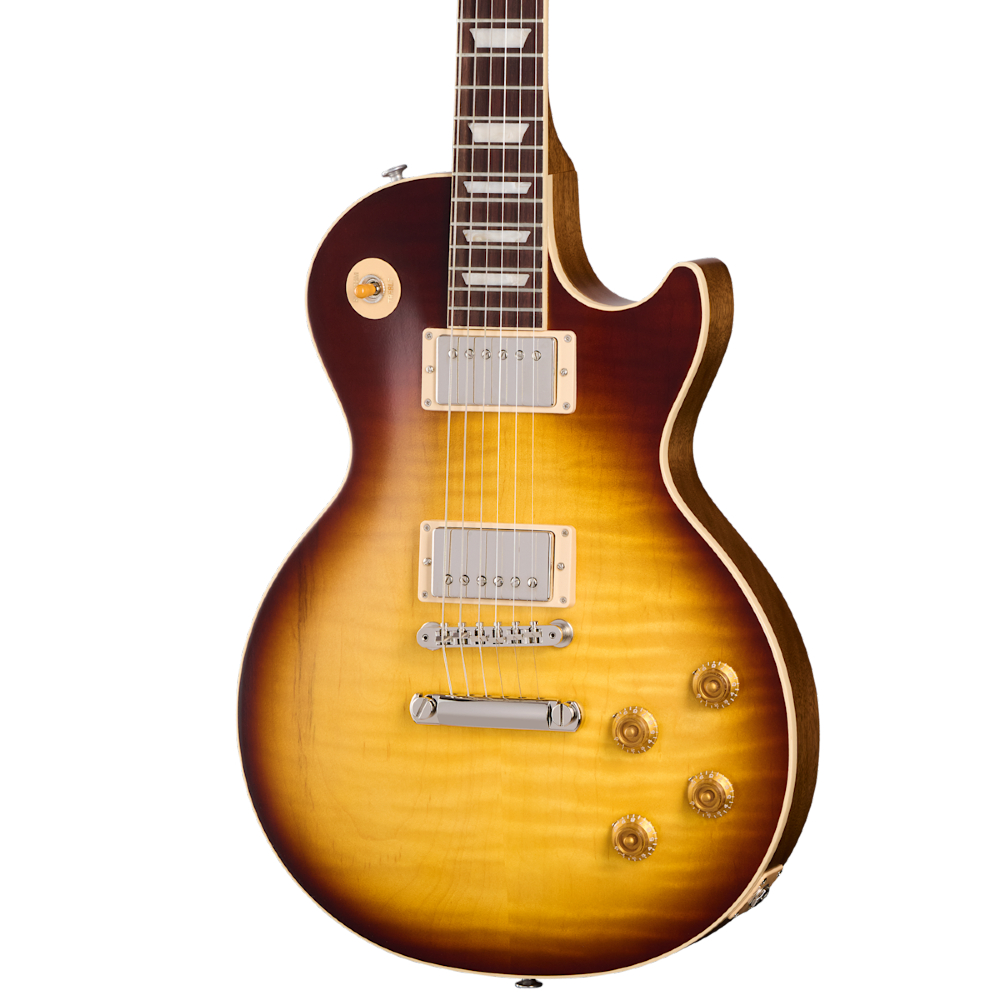 - Les Paul Standard 50s Figured Top je opremljen sa ABR-1, klasičnim Tune-O-Matic™ mostom, aluminijumskim Stop Bar krajem, Vintage Deluxe štimerima sa Keystone dugmadima i zlatnim Top Hat dugmadima.