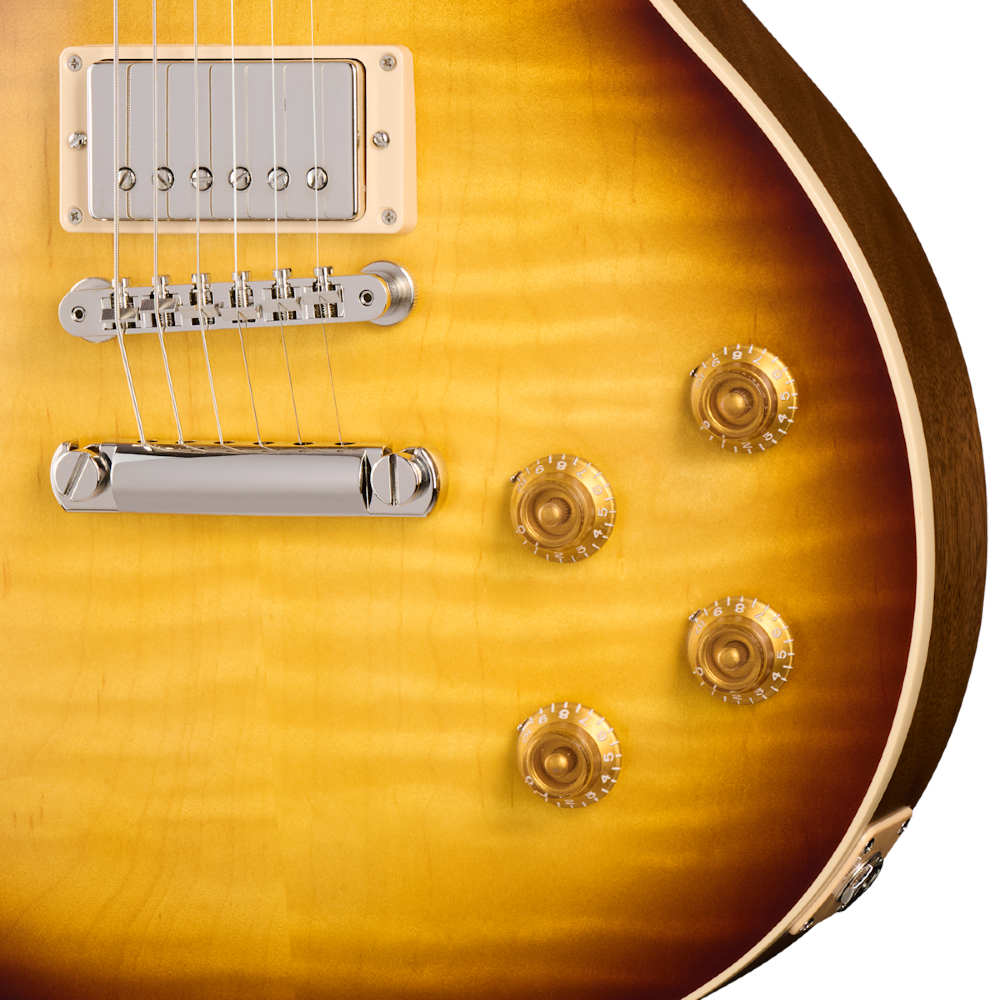 Les Paul™ Standard 50s Figured Top vraća se klasičnom dizajnu koji ga je učinio relevantnim, sviranim i voljenim – oblikujući zvuk kroz generacije i žanrove muzike. Odaje počast Gibsonovoj zlatnoj eri inovacija i vraća autentičnost u život.