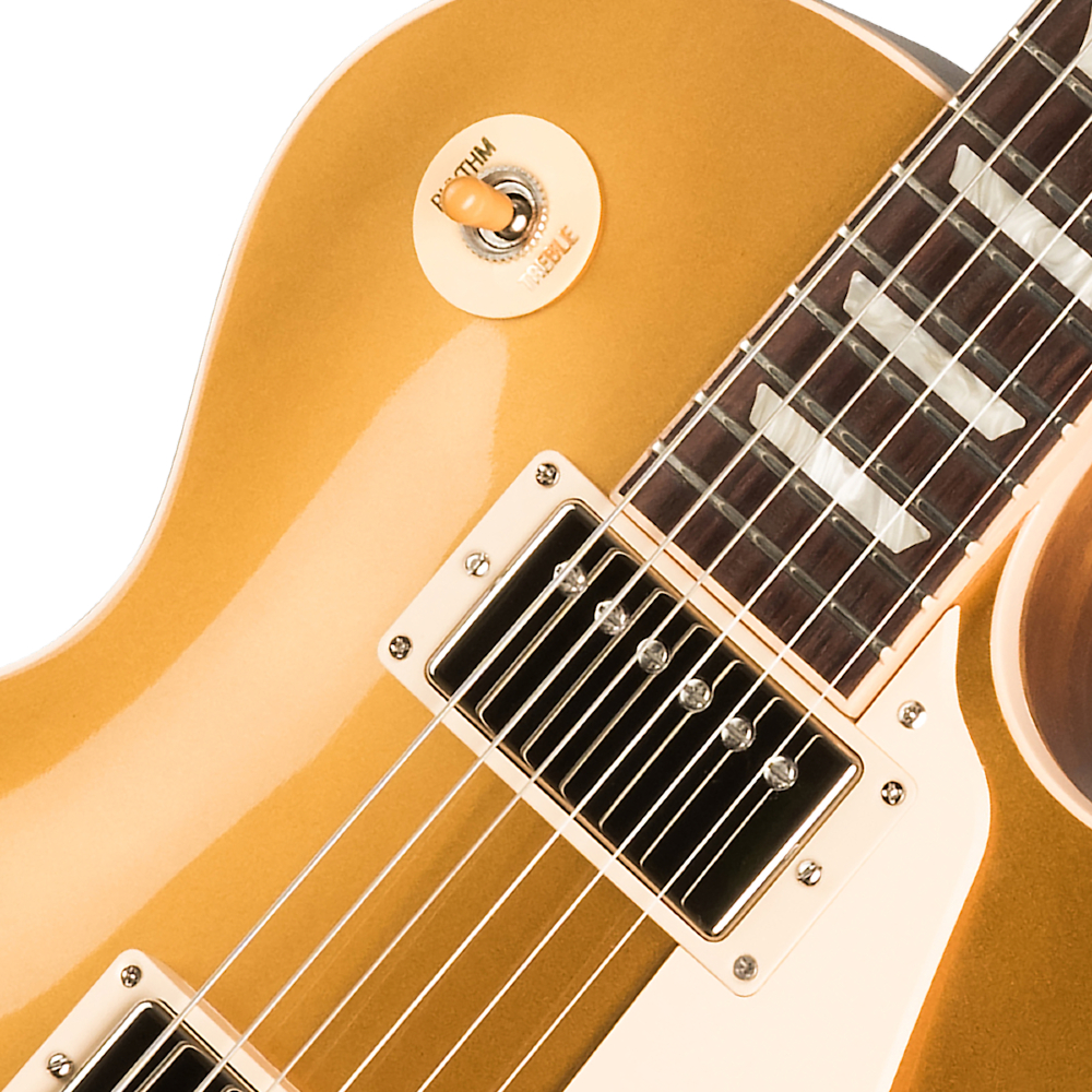 - Les Paul Standard 50s Figured Top je opremljen sa ABR-1, klasičnim Tune-O-Matic™ mostom, aluminijumskim Stop Bar krajem, Vintage Deluxe štimerima sa Keystone dugmadima i zlatnim Top Hat dugmadima.
