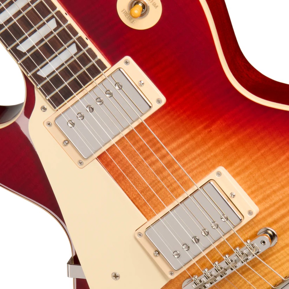 Les Paul™ Standard 50s Figured Top vraća se klasičnom dizajnu koji ga je učinio relevantnim, sviranim i voljenim – oblikujući zvuk kroz generacije i žanrove muzike. Odaje počast Gibsonovoj zlatnoj eri inovacija i vraća autentičnost u život.